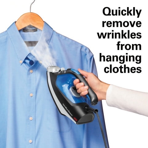 - EASY IRONING: Freshen and remove wrinkles from clothes your way with the 2 in 1 steamer iron. You can iron the traditional way with or without steam or use the steamer nozzle to steam clothes right on the hanger.