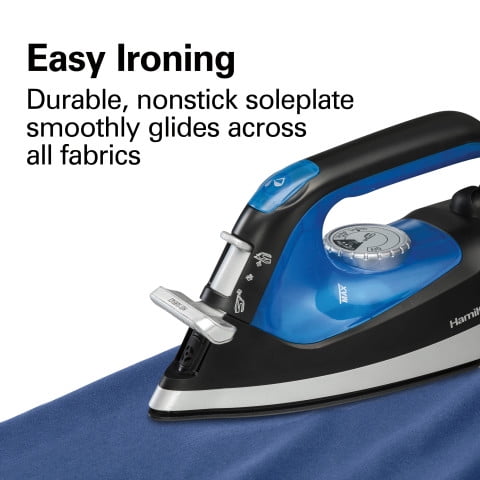 - EASY IRONING: The durable, nonstick soleplate on this steam iron smoothly glides across all fabrics to get wrinkles out without sticking to fabrics. Ironing is easy whether you’re ironing a delicate dress for a party or everyday t-shirts.