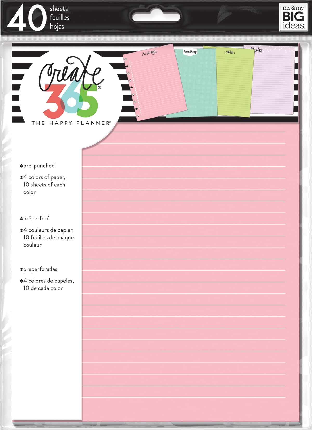 These sheets are the perfect addition to your Happy Planner (sold separately). This package contains 40 7×9.25 inch pre-punched sheets in four colors (ten sheets of each color). Imported.Happy Planner Medium Fill Paper 40/Pkg-Colored