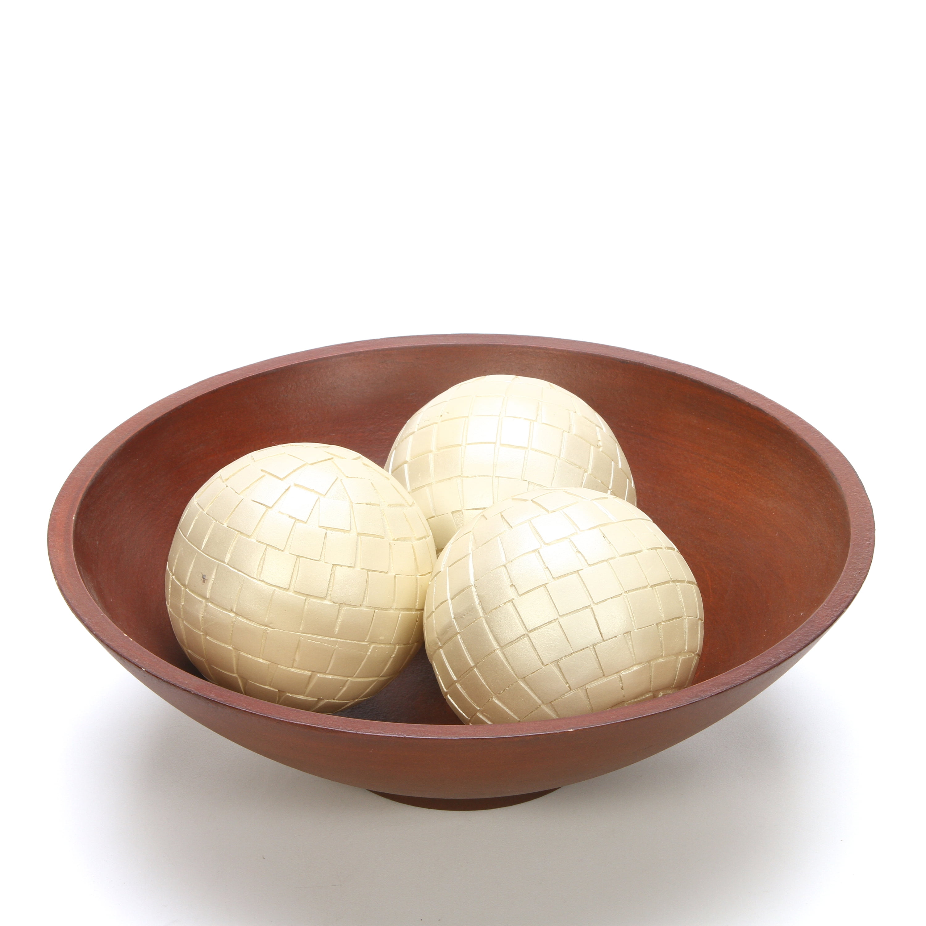 Hosley Dark Brown Wood Finish Decorator Bowl. Each one measures 11.8" x 11.8" x 3.75". Compatible with dry potpourri, decorative orbs, artificial fruit, wrapped candy, and flowers. For decorative use only. Not for food use. Our decorative bowl is designed for durability and versatile uses. Create a great centerpiece in your home or office with Hosley’s Decorative Bowls. Ideal gift for Weddings, Parties, Special Occasions, Holidays, and more.