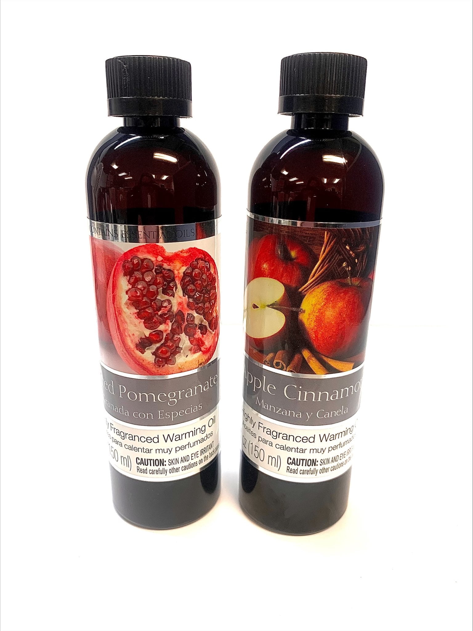 - PRODUCT: Hosley Set of 2 Assorted Fragrance Warming Oils 5oz Each-Spiced Pomegranate & Apple Cinnamon.