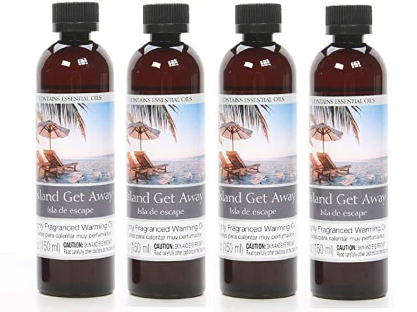 Hosley’s Set of 4, 5 oz Premium Island Get Away Fragrance Warming Oils. Instructions: For use with oil warmers only. Use oil as is. Do not dilute. Follow the directions of the oil warmer for amount to be used (DO NOT OVERFILL). Only add oil to a clean warmer that is at room temperature. Caution: Skin and eye irritant. Do not ingest. Keep out of reach of children and pets. May damage finished surfaces if spill occurs. Contains fragrance oils. LABELS MAY VARY
