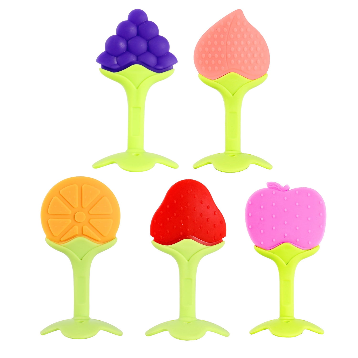 Howarmer 5 Pack Silicone Baby Fruit Teething Toys Teethers for Newborn Infants Freezer Safe BPA Free