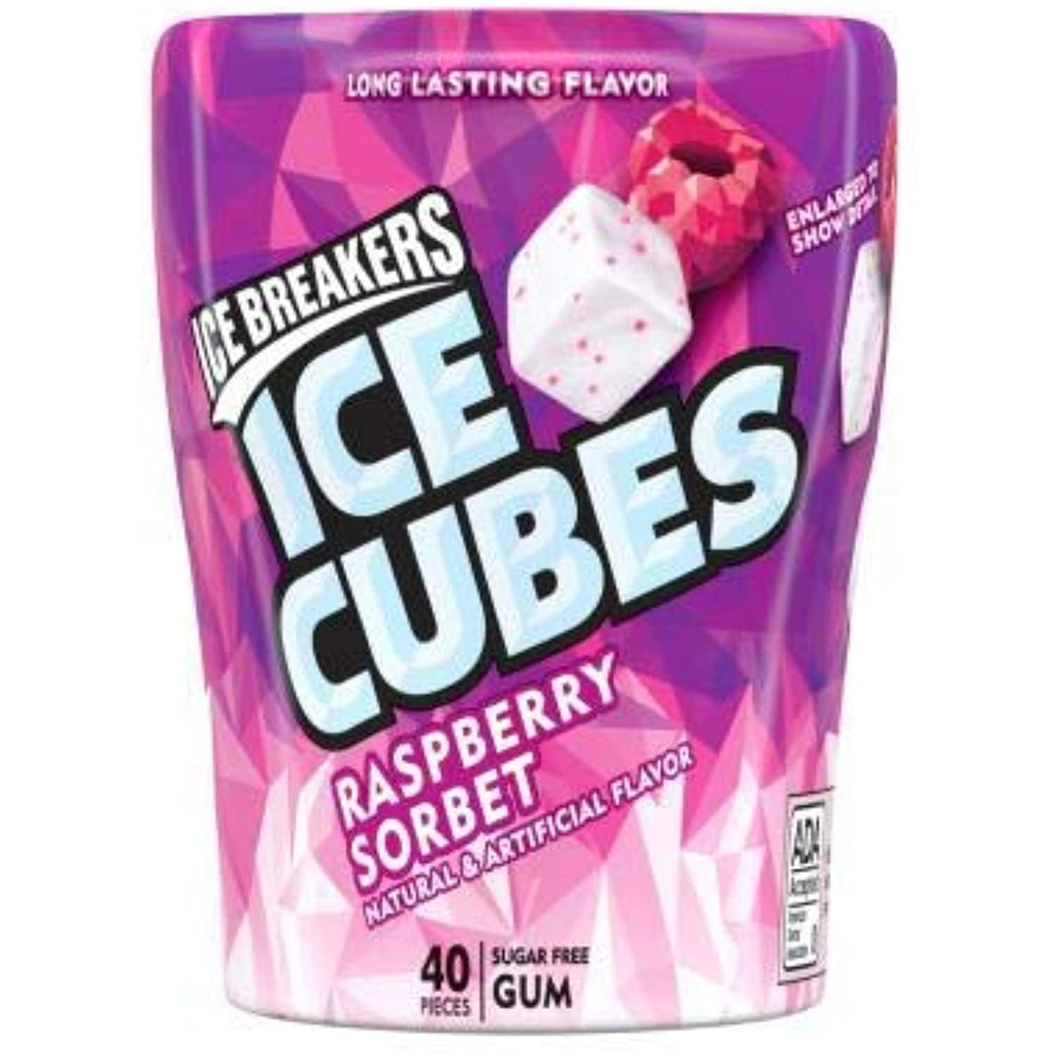 Keep refreshingly delicious ICE BREAKERS ICE CUBES Sugar Free Gum close by in convenient bottle packs. Frosty cube-shaped pieces of gum are instantly cold and loaded with dazzling flavor crystals. Raspberry Sorbet