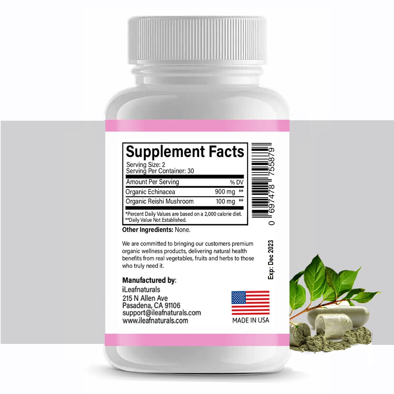 Strengthening your immune system is important, it’s your body’s defense against infections and viruses that could make you ill. iLeaf Naturals Echinacea with Reishi Mushroom naturally helps you ease off anxiety and stress while promoting a healthy immune response, so you can stay feeling your best year-round. Organic Echinacea is widely used to stimulate the body’s immune system, helping to ward off, or reduce, the duration of colds and other infections. Echinacea plants contain a complex mix of active substances. Some of these compounds may have beneficial anti-microbial, anti-viral and antioxidant properties, while others may support the immune system in other ways. People with weak immune system become seriously ill with infections that most people can fight off; it even becomes easier to attract more infections. iLeaf Naturals Echinacea is non-GMO, harvested in their early developmental phase to support the immune system, finally blended with Organic Reishi Mushroom. Echinacea and Reishi work synergistically together to enhance its effects more than that of an individual herb. The fruiting bodies of Reishi mushroom is notable all over the world for its powerful health benefits. Recognized as an adaptogen, Reishi helps the body adjust to internal and external stress, limit anxiety and most importantly boost the immune system. Studies have shown that Reishi can affect the genes in white blood cells, which are critical parts of the immune system. Traditional Chinese Medicine considered Reishi a tonic for vital energy or Qi, which is thought of as a force field surrounding the body that maintains overall health and vitality. iLeaf Naturals Echinacea Whole-Herb Capsules 1000MG With Reishi Mushroom, Immune System Support, Ease Off Internal & External Stress, Organic Dietary Supplement – 60 Veggie Pills.