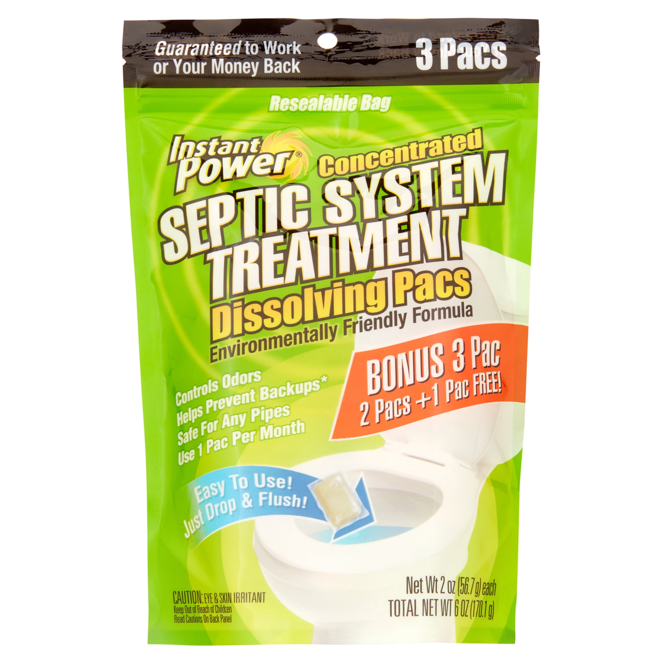Instant Power septic system treatment contains specially blended enzyme-producing bacteria that helps digest household waste, reducing sludge buildup in septic tanks and drain fields. Our 100% natural bacteria and enzymes are proven to break down organic household waste. Used monthly, Instant Power Septic System Treatment helps prevent expensive septic disasters and helps keep your septic system operating efficiently. Works with anaerobic and aerobic septic systems up to 1500 gallons.