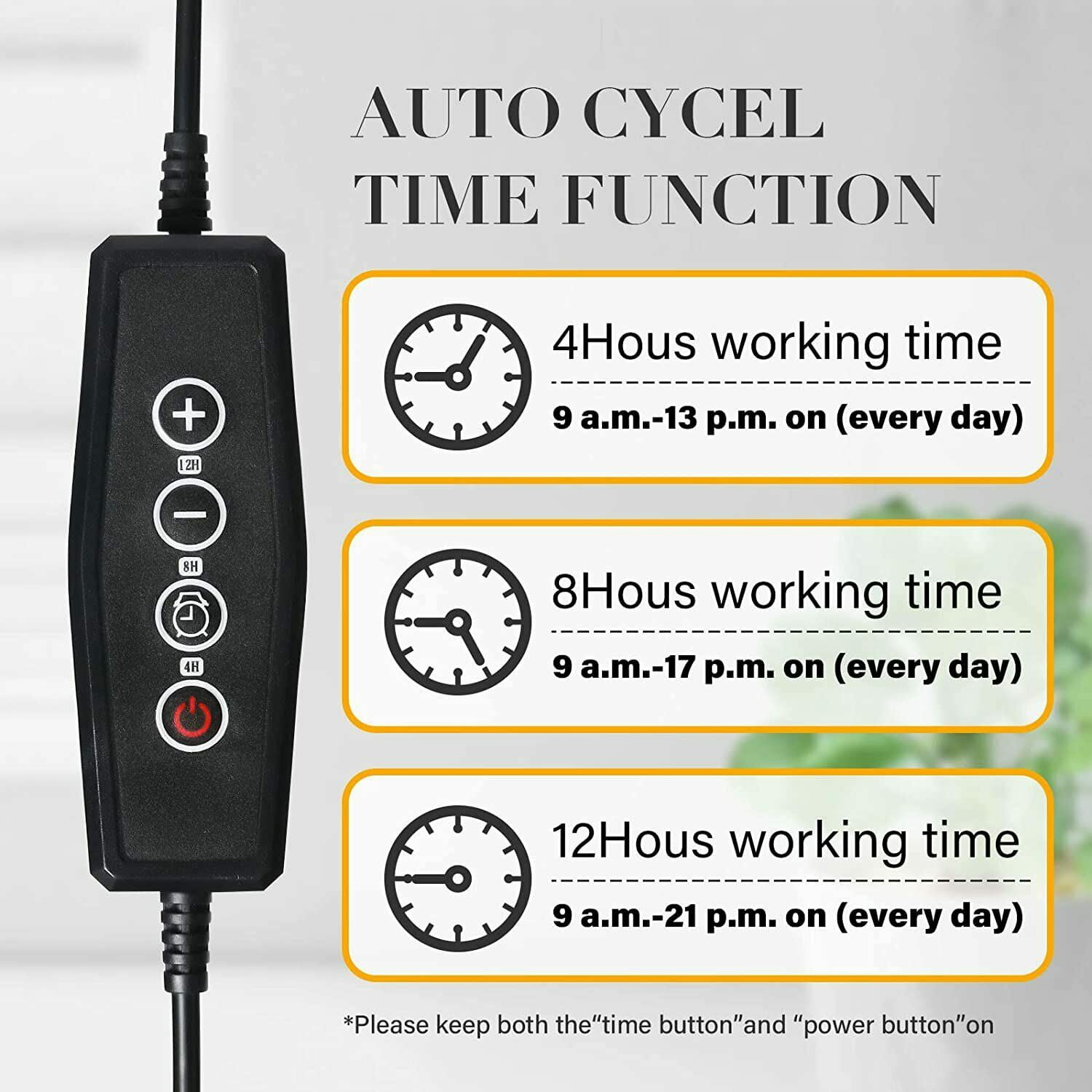 - Auto ON/OFF & Timing Function: 3 options-4h/8h/12h. When keeping power, it can automatically turn on and off every day according to your settings, no more manual operation for you