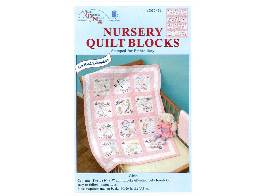 Jack Dempsey Nursery Quilt Blocks Girls 12pc