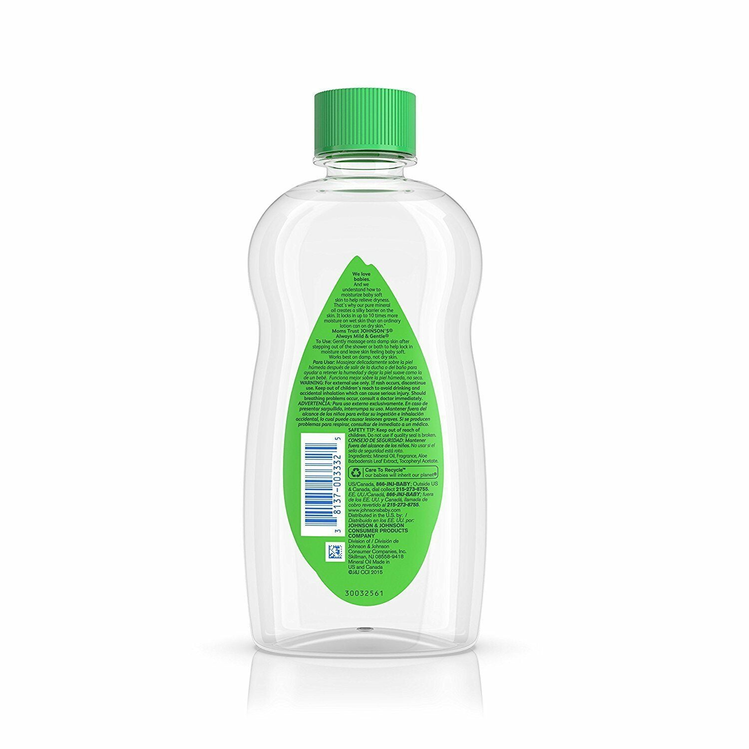 JOHNSON’S. Trusted since 1885.Baby OilJ & JActive Ingredients:Mineral Oil; Aloe Barbadensis Leaf Extract; Fragrance; Tocopheryl AcetateFor baby: Use daily to help protect skin from dryness and seal in moisture. For you: Step out of the shower or bath, then apply on wet skin to lock in moisture and leave skin feeling soft and smooth. Pat dry with towel. Safety tip: To avoid slipping, do not apply while in shower or bath.Uses:The way your skin looks and feels depends in part on how much moisture it contains. Discover an effective way to help protect your skin from dryness and itching, flaking and ashiness that may come with it. Baby oil with aloe vera & vitamin E locks in up to 10 times more moisture on wet skin than an ordinary lotion can on dry skin. So your skin feels baby soft, and silky smooth.For external use only. Do not apply to irritated skin. If rash occurs discontinue use. Keep out of children’s reach to avoid drinking and accidental inhalation which can cause serious injury. Should breathing problems occur, consult a doctor immediately.