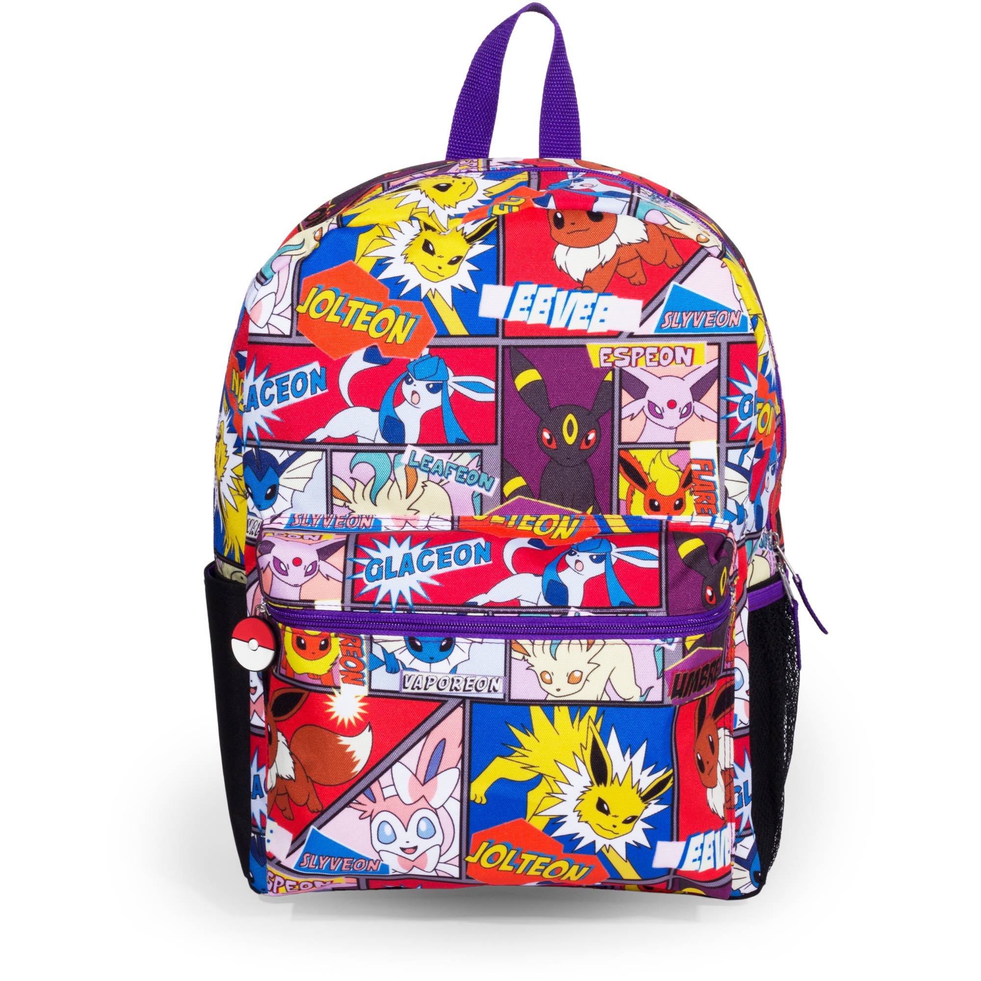 - Gold-tone hardware; front exterior zip pocket with woven logo; two side mesh pockets; molded rubber zipper pull; allover print; striped webbing; reflective details at straps; padded printed back