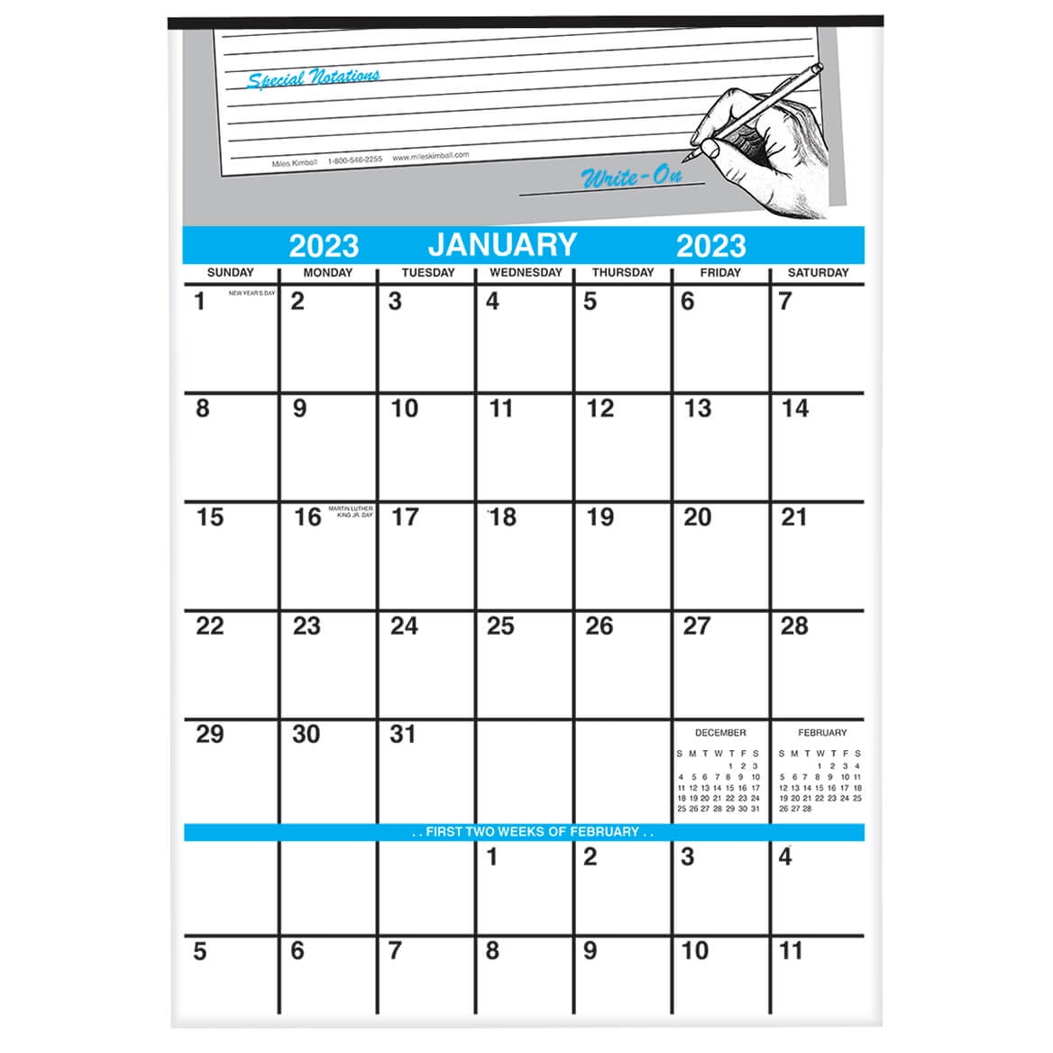 Busy families need clever Miles Kimball calendars to help them keep track of their day-to-day activities. Luckily, our Write-On Calendar Junior Wall Calendar is just the Miles Kimball calendar to add to your home so you can stay on top of appointments, school assignments, project deadlines, games, playdates and work schedules. Our write-on wall calendar also is a fantastic way to keep track of birthdays and anniversaries. This large, easy-to-read write-on paper calendar features one full month per page as well as the next two weeks of the upcoming month (so no surprises when you flip that page). As one of our best-selling Miles Kimball calendars, this junior-sized write-on calendar is not too big and not too small – it’s just the right size for all of your needs. See why many of our customers return to purchase this Miles Kimball calendar each and every year – they even purchase this wall calendar as a gift for friends and family members, too. Looking for our larger version of this Miles Kimball calendar? Check out the Write-On Calendar Giant for an extra-large wall calendar for your home.