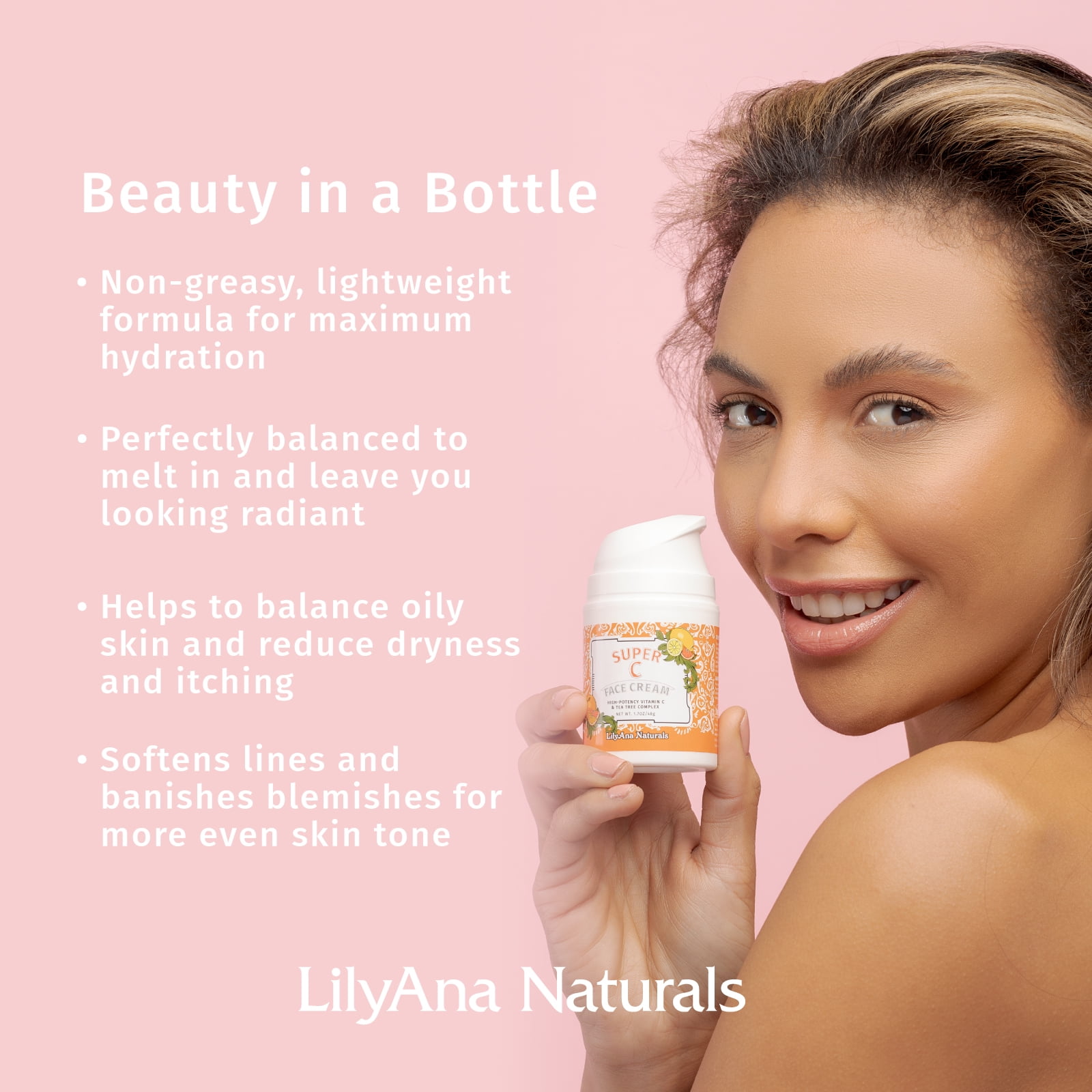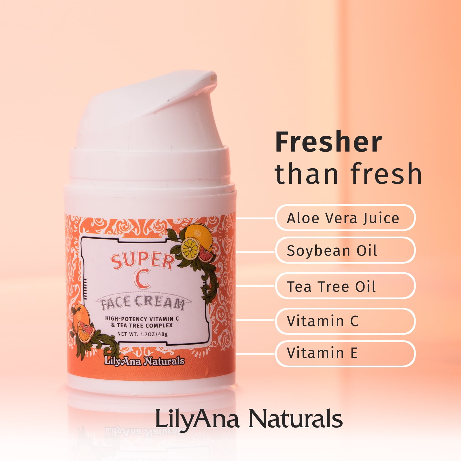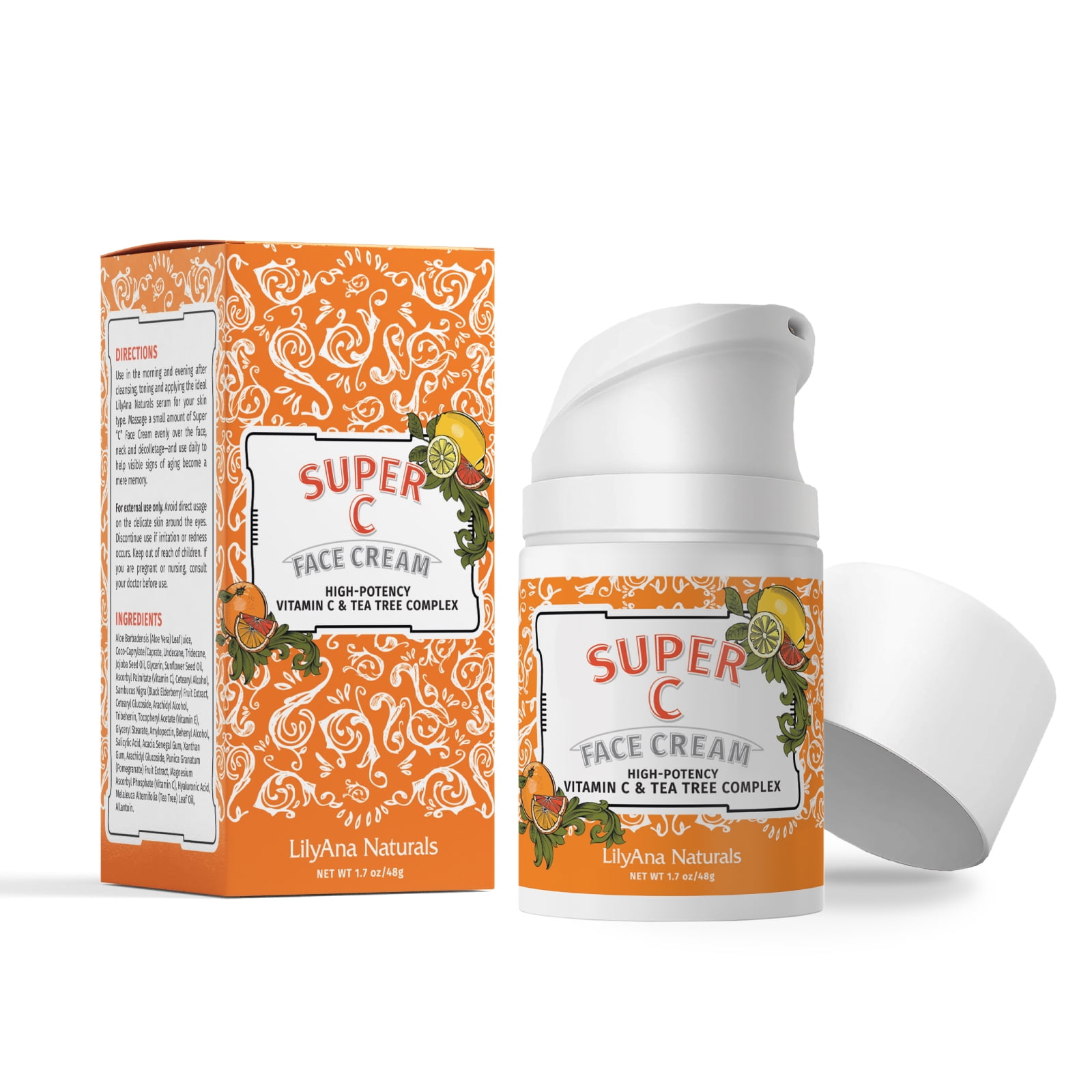 LilyAna Naturals Vitamin C and Tea Tree Complex Natural Super C Face Cream, 100% Vegan, Cruelty-Free, Paraben and Sulphate free,1.7 oz: