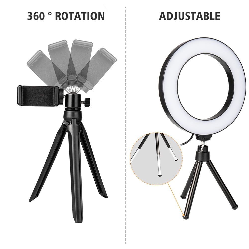 LINKPAL LED Ring Light Kit, 6" Outer Dimmable LED Ring Light with Tripod Stand, Mini Led Camera Ringlight w/3-Light Color & 9 Brightness Level for YouTube, Self-Portrait Shooting, Streaming