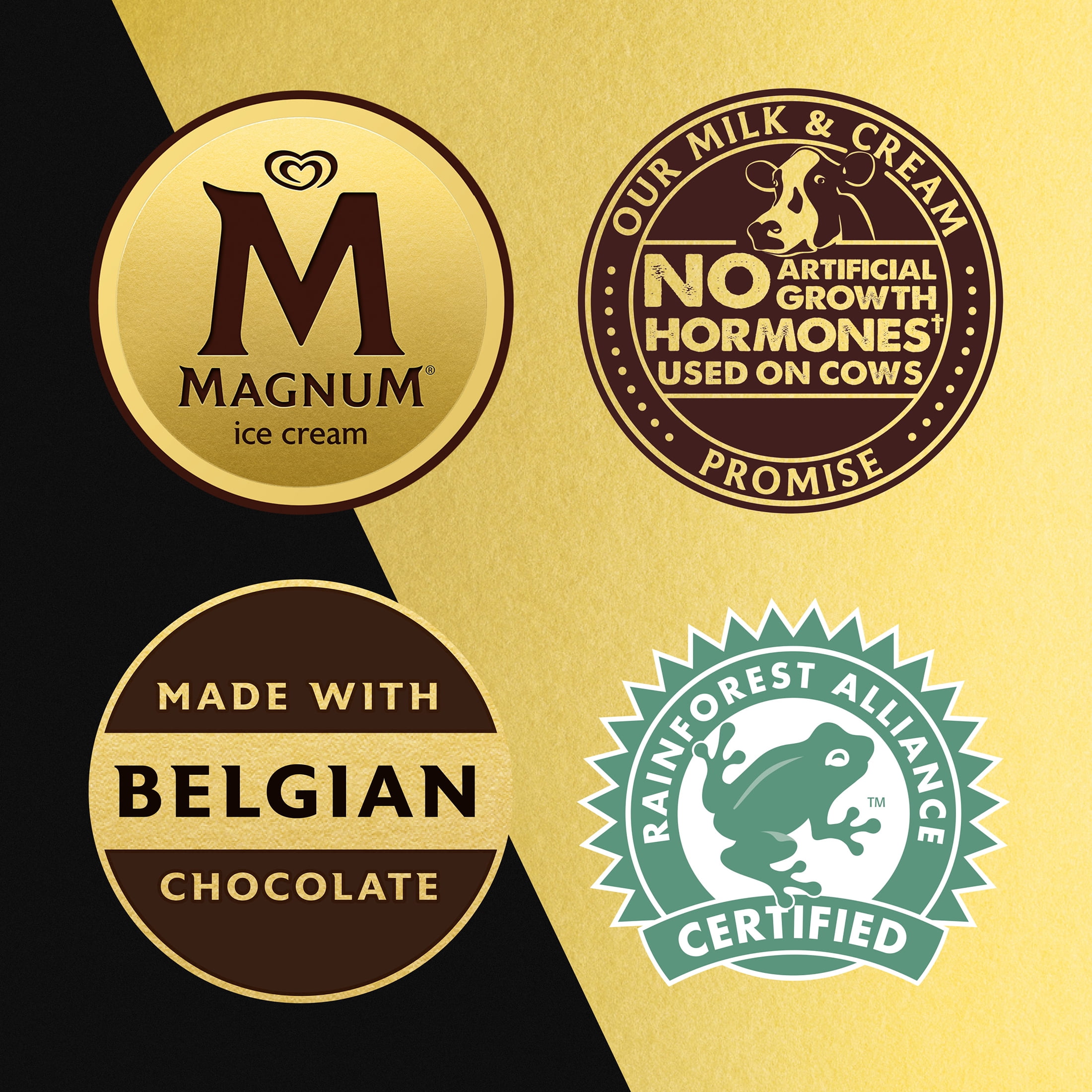 At Magnum, we believe that a day without pleasure is a day lost. Magnum’s “Doubles” range of ice cream bars offers our ultimate indulgence for true pleasure seekers. Each mini ice cream bar is made with velvety smooth ice cream and is covered in a chocolatey layer, a layer of luscious sauce, and a final thick chocolate coating made with Belgian chocolate. The result is a savory, double caramel ice cream frozen treat, the perfect combination of delicious flavors and textures in every bite. Magnum Double Caramel mini ice cream bars offer our ultimate delight for the senses: vanilla ice cream dipped in a chocolatey coating, rich caramel sauce, and milk chocolate. Our golden caramel sauce is basically pampered in Magnum chocolate. Available in both full-sized and mini bars. Go ahead. Bite into this luxurious treat unlike any other. Beyond our Double Caramel flavor, explore the full range of Magnum ice cream bars and discover an expansive world of pleasure. Each flavor is made with Belgian chocolate that uses cocoa beans sourced from Rainforest Alliance Certified™ farms. Belgian chocolate has an outstanding reputation for its smooth, rich flavor and tempting chocolate aroma. It’s recognized around the world because of its meticulous adherence to ‘Old World’ craftsmanship. Our premium ice cream bars are crafted in this rich heritage and are made with a signature Belgian chocolate recipe developed specifically for us. While still warm, this delicious coating wraps around our velvety ice creams, instantly cooling to leave our signature solid, thick shell – ready and waiting to be cracked. From intense to sweet to salty to dark, which one will satisfy your next snack indulgence?
