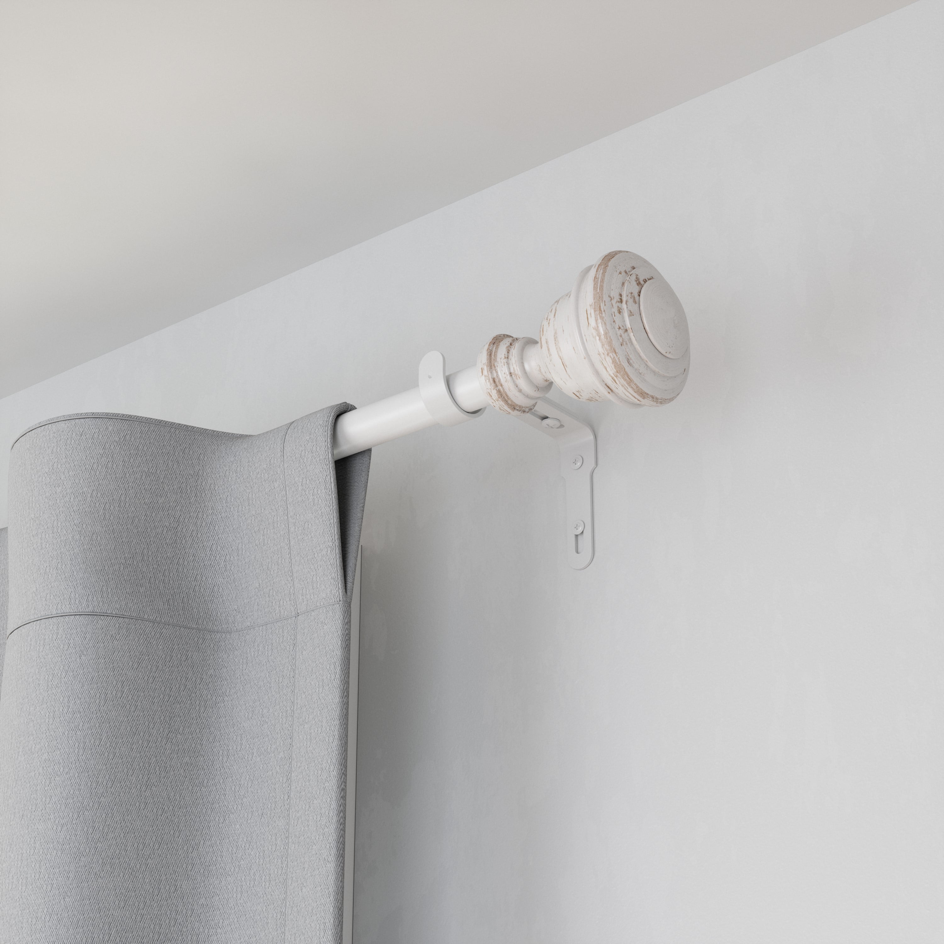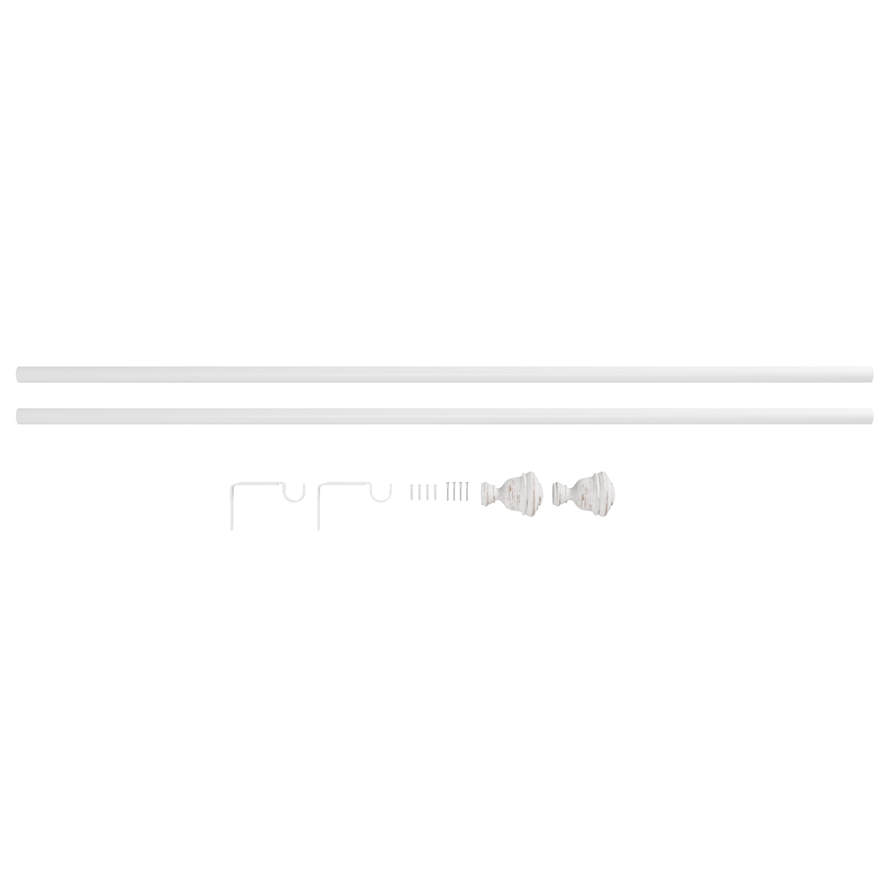 A 3/4” diameter curtain rod that adds modern warmth to any room. It’s great for living rooms, bedrooms or dining rooms. In a rustic white finish, White Urn complements a variety of decor styles. This curtain rod features a metal rod, which extends from 30-84 inches, ensuring it fits a variety of window sizes. It can support light to medium weight curtains with a 22 lb. weight capacity. Brackets and mounting hardware are included for easy installation.