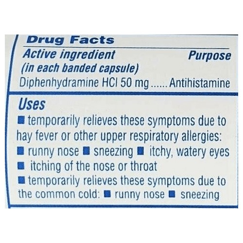 - Major Banophen Allergy Relief Capsule Adult Children 12 Years Over Bendryl Diphenhydramine HCl 4 to 6 Hours