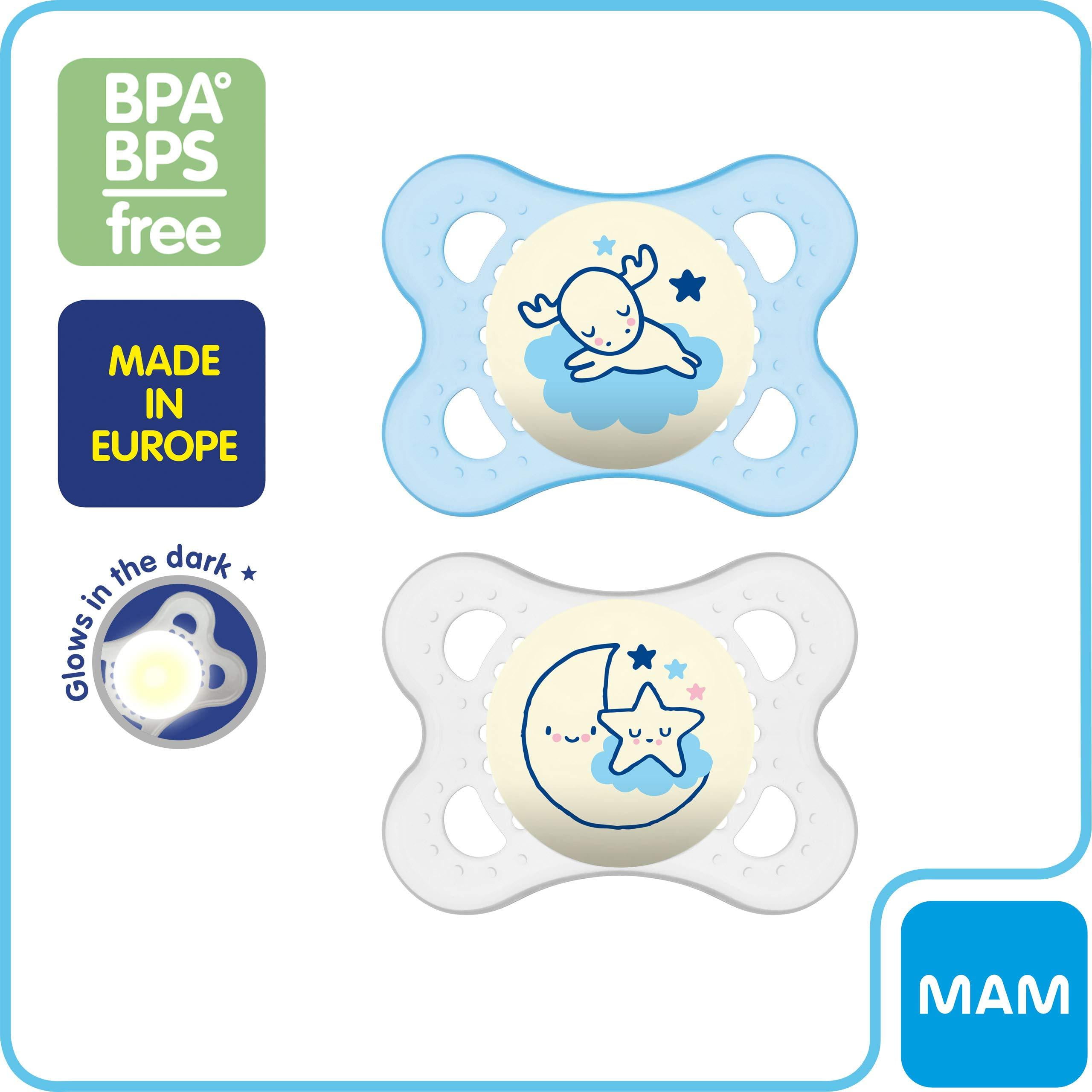 MAM Night Orthodontic Pacifier, Boy, 0-6 Plus Months, 2-Count