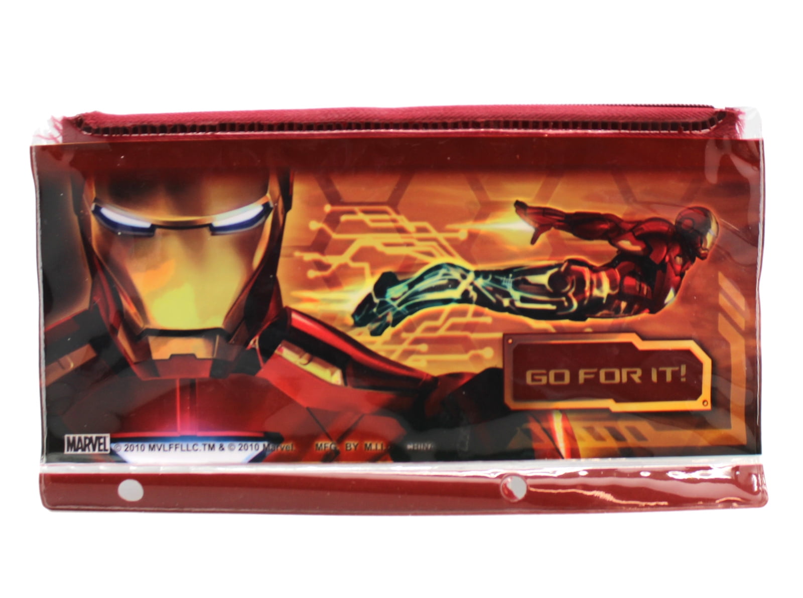 It’s his time to shine! ; Iron Man pencil pouch; Fits in a 3-ring binder; Made from vinyl material; Officially licensed product; Measures 4in (10cm) tall and 9in (23cm) long