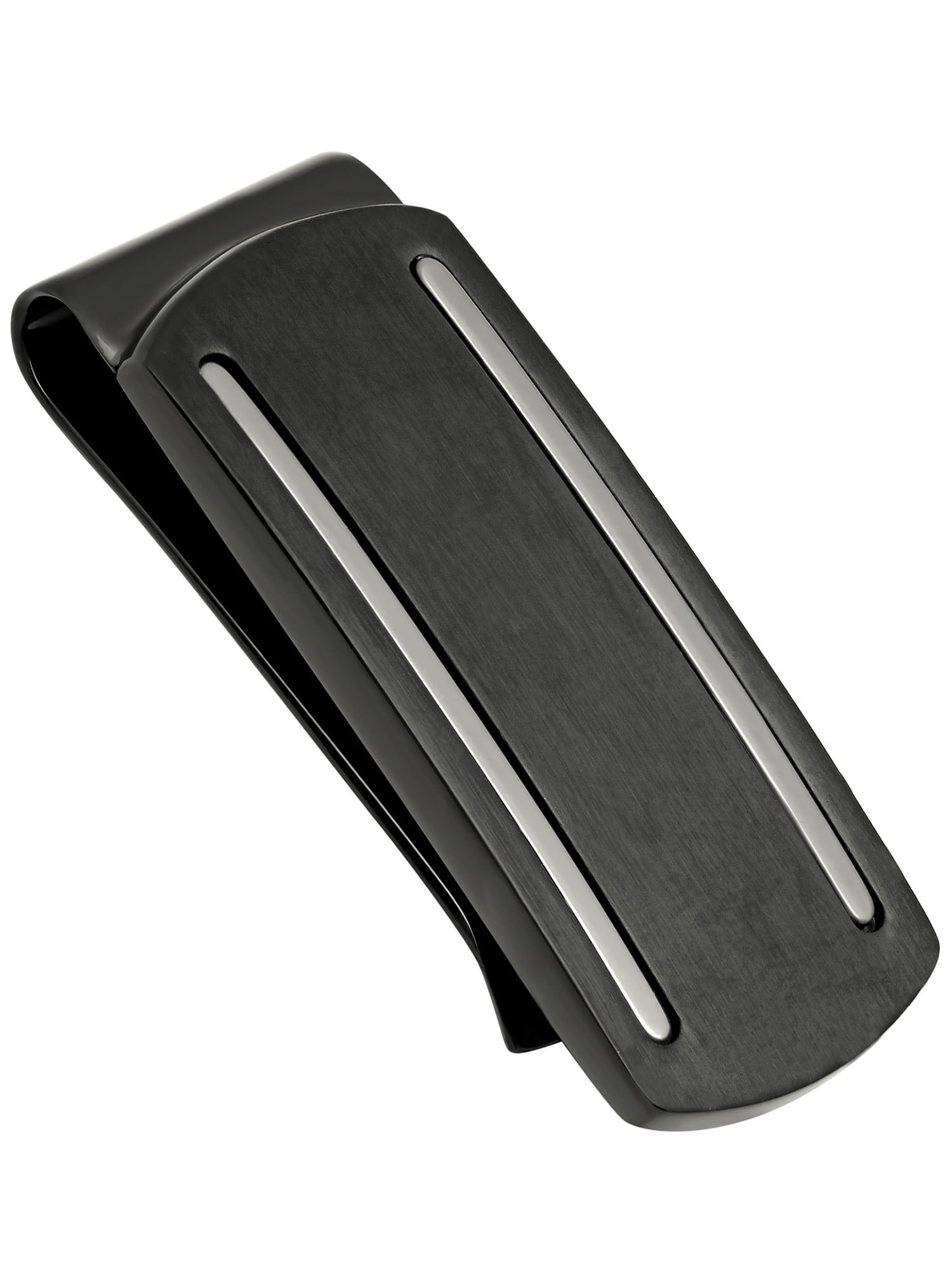 Men’s Black Stainless Steel Two-Tone Striped – Mens Money Clip