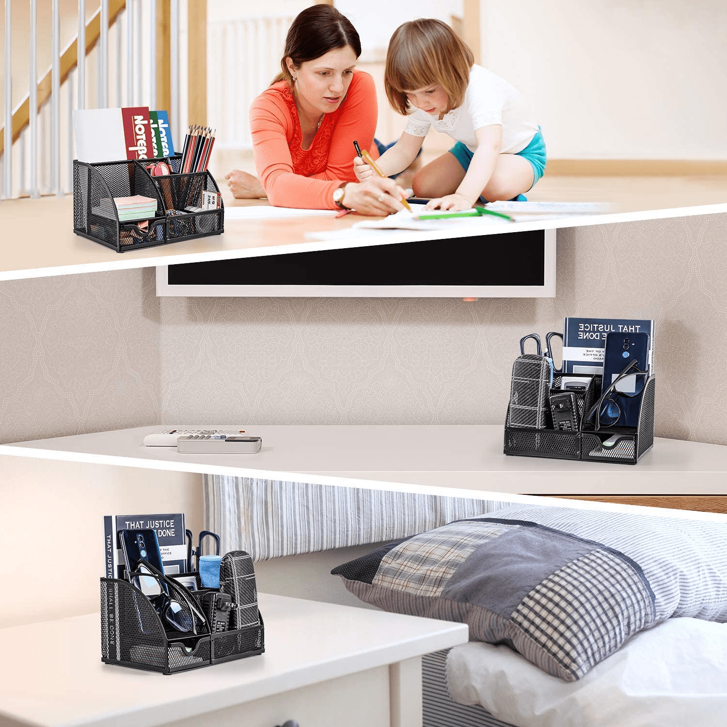 Multifunctional Office Accessories Mesh Office Supplies Desk Organizer Caddy with 6 Compartments for Home Office ,School