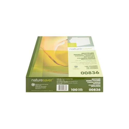 File away documents naturally. Letter-size folders are made from heavyweight, recycled 11 point manila stock. One-ply tab is 1/2" high and undercut. File folders are scored for 3/4" expansion.