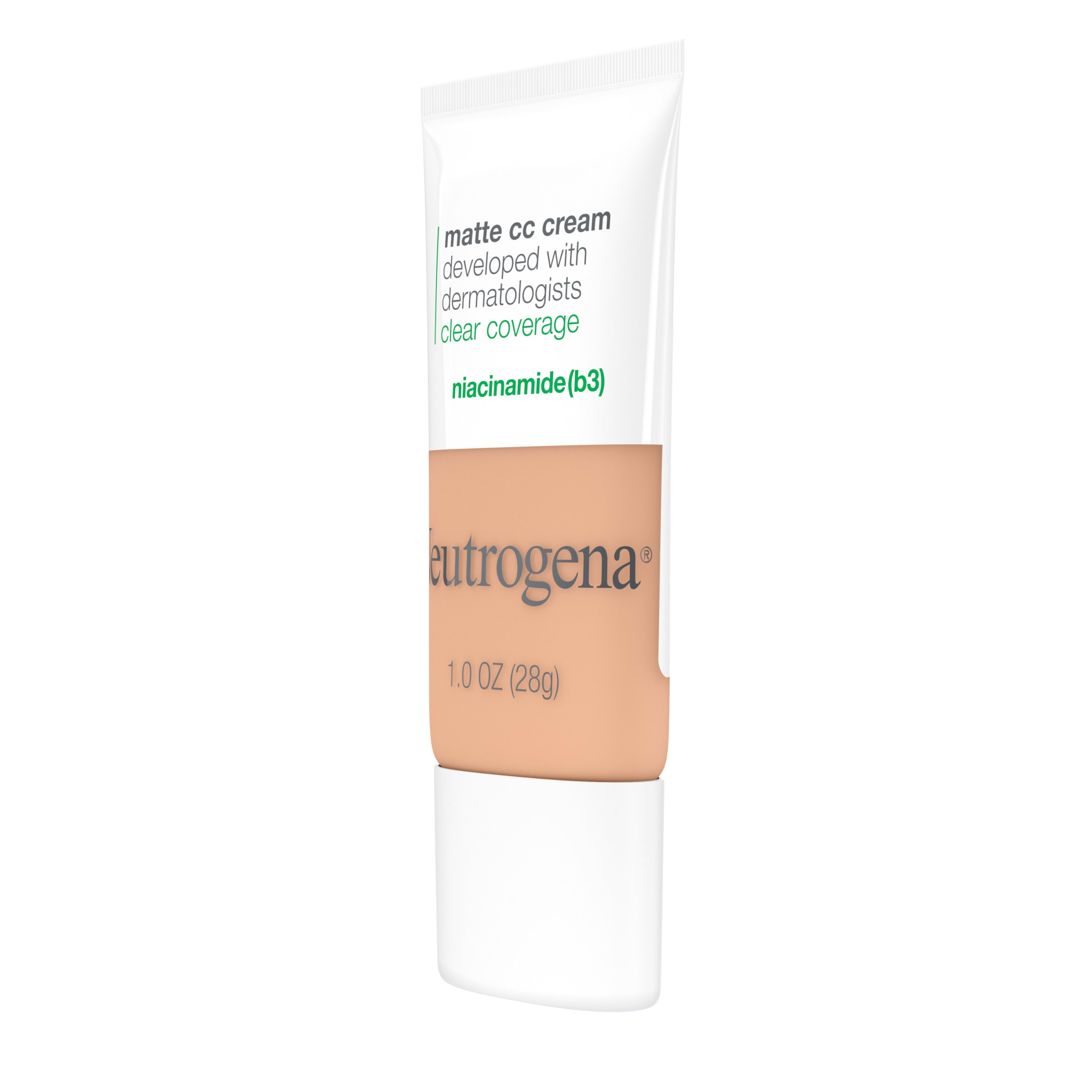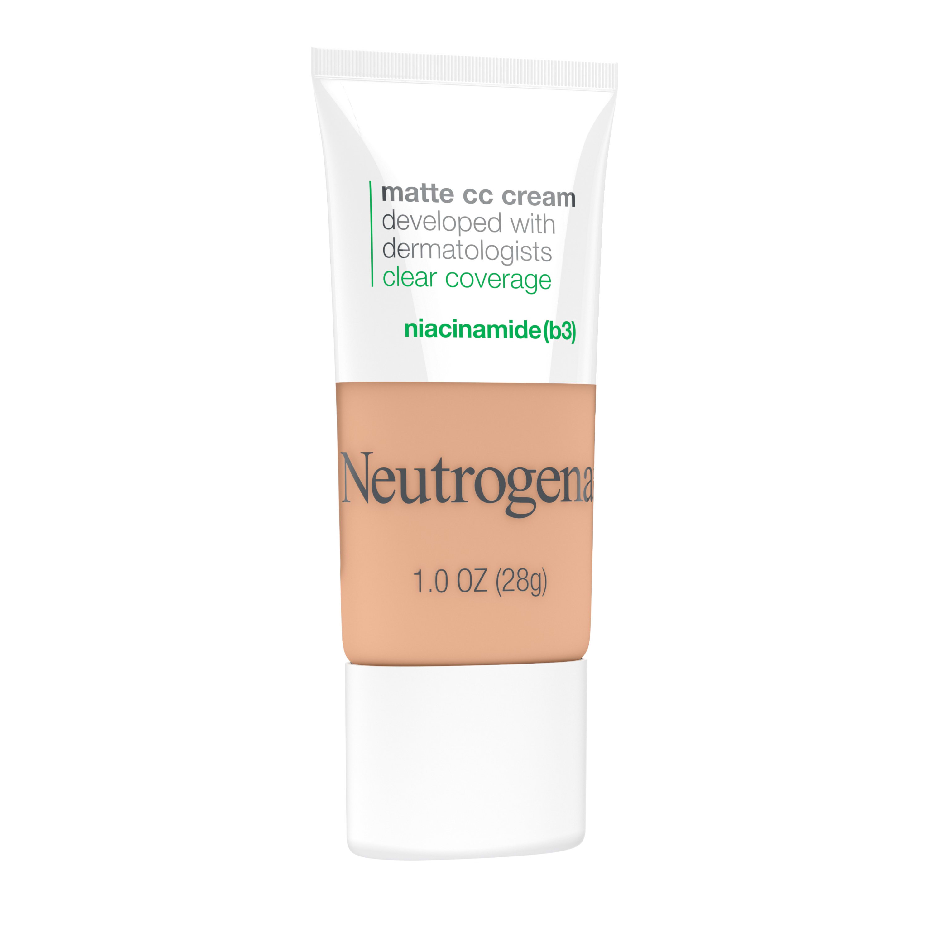 Get a flawless looking complexion with Neutrogena Clear Coverage Flawless Matte CC Cream. Available in 34 natural-looking shades, this color correcting cream makeup from a dermatologist recommended brand provides full, matte coverage, designed to mask imperfections and even skin tone. The mattifying foundation was developed with dermatologists for acne prone skin and is formulated with niacinamide (b3) and is hypoallergenic, free of oil, fragrance, parabens, and phthalates. This breathable formula feels comfortable on skin, blurs the look of discoloration and redness, and leaves skin feeling soft and smooth.