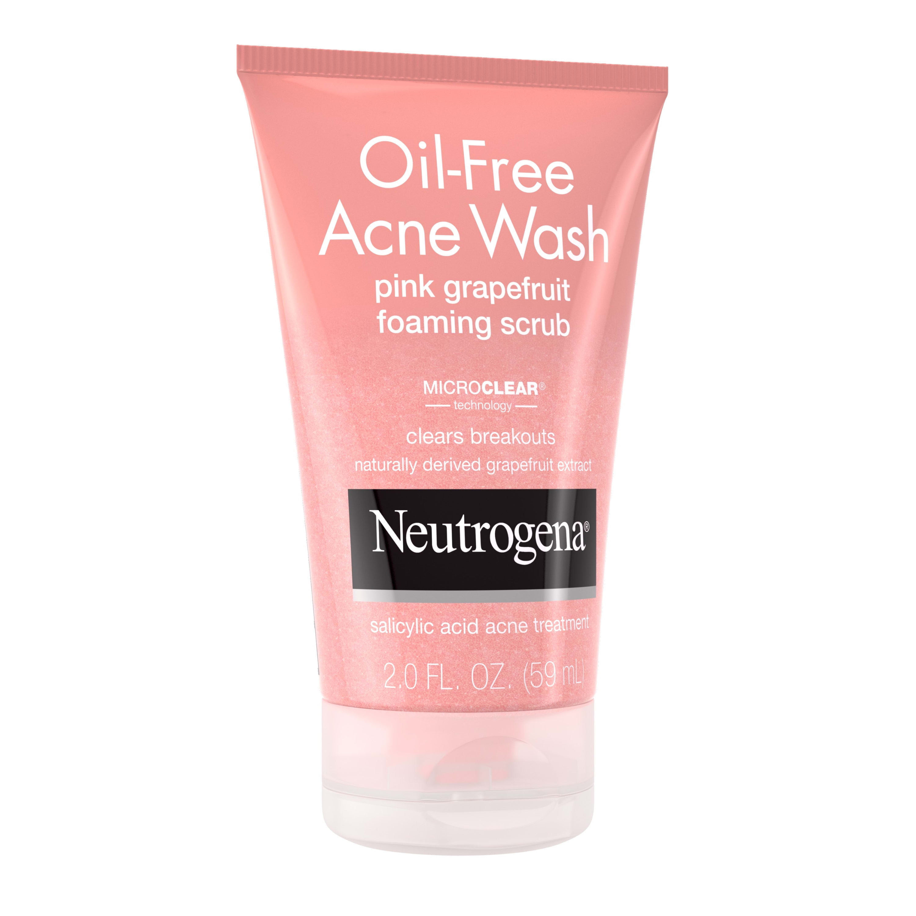 - Buff away dirt, oil, & impurities with the Neutrogena Oil-Free Pink Grapefruit Acne Wash Face Scrub