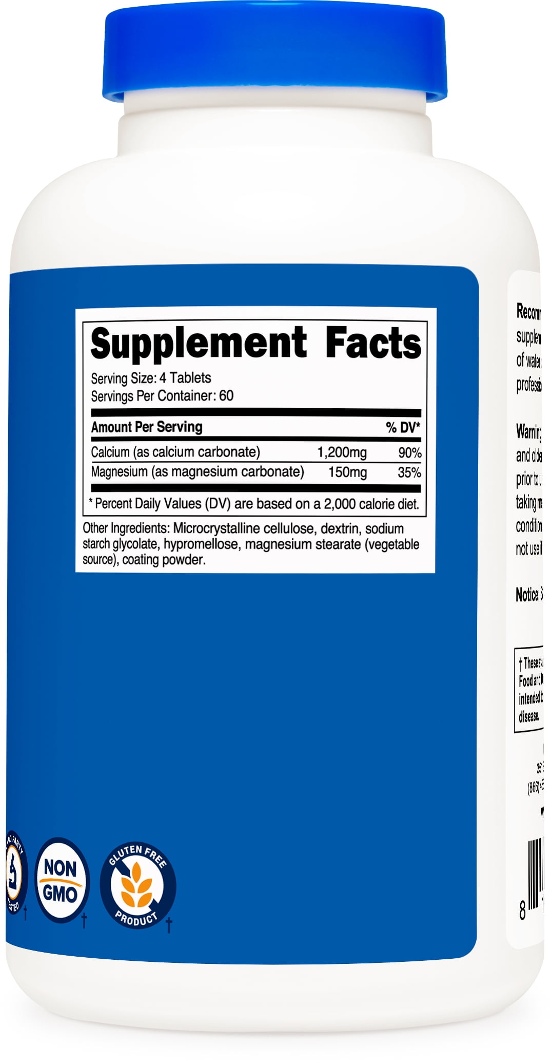 A serving Nutricost Calcium & Magnesium Tablets contain a bone support formula of 1200mg of calcium carbonate and 150mg of magnesium carbonate per serving (4 Tablets). Nutricost, located and headquartered in the USA, only uses the best ingredients to ensure maximum quality and to help you feel your best! By keeping our supplement recipes simple and clean, you get the best experience possible with Nutricost. Our supplements are manufactured in a GMP-compliant and FDA-registered facility; and each batch of every product is tested by independent, ISO-accredited laboratories. These statements have not been evaluated by the Food and Drug Administration. This product is not intended to diagnose, treat, cure, or prevent any disease.