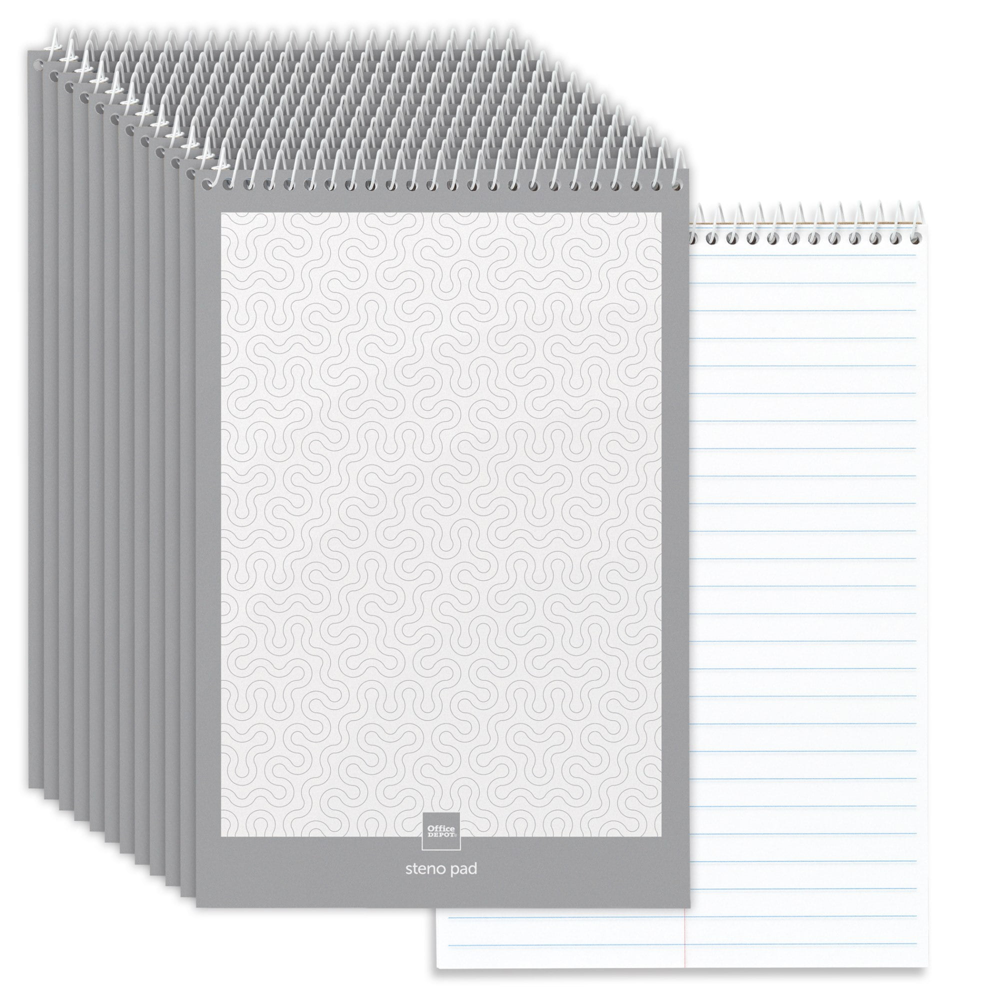 Office Depot Steno Books, 6in. x 9in., Gregg Ruled, 70 Sheets, White, Pack Of 12, 99475