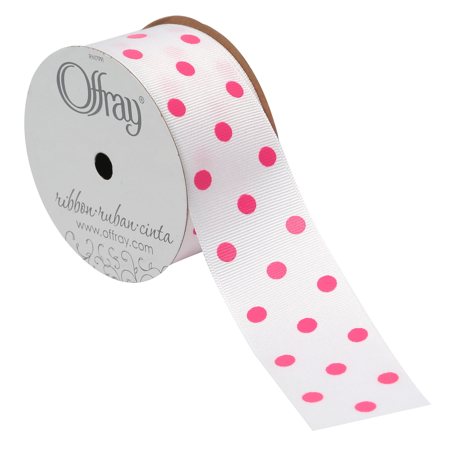 Offray Ribbon, Light Pink Dot on White 1 1/2 inch Grosgrain Polyester Ribbon for Sewing, Crafts, and Gifting, 9 feet, 1 Each