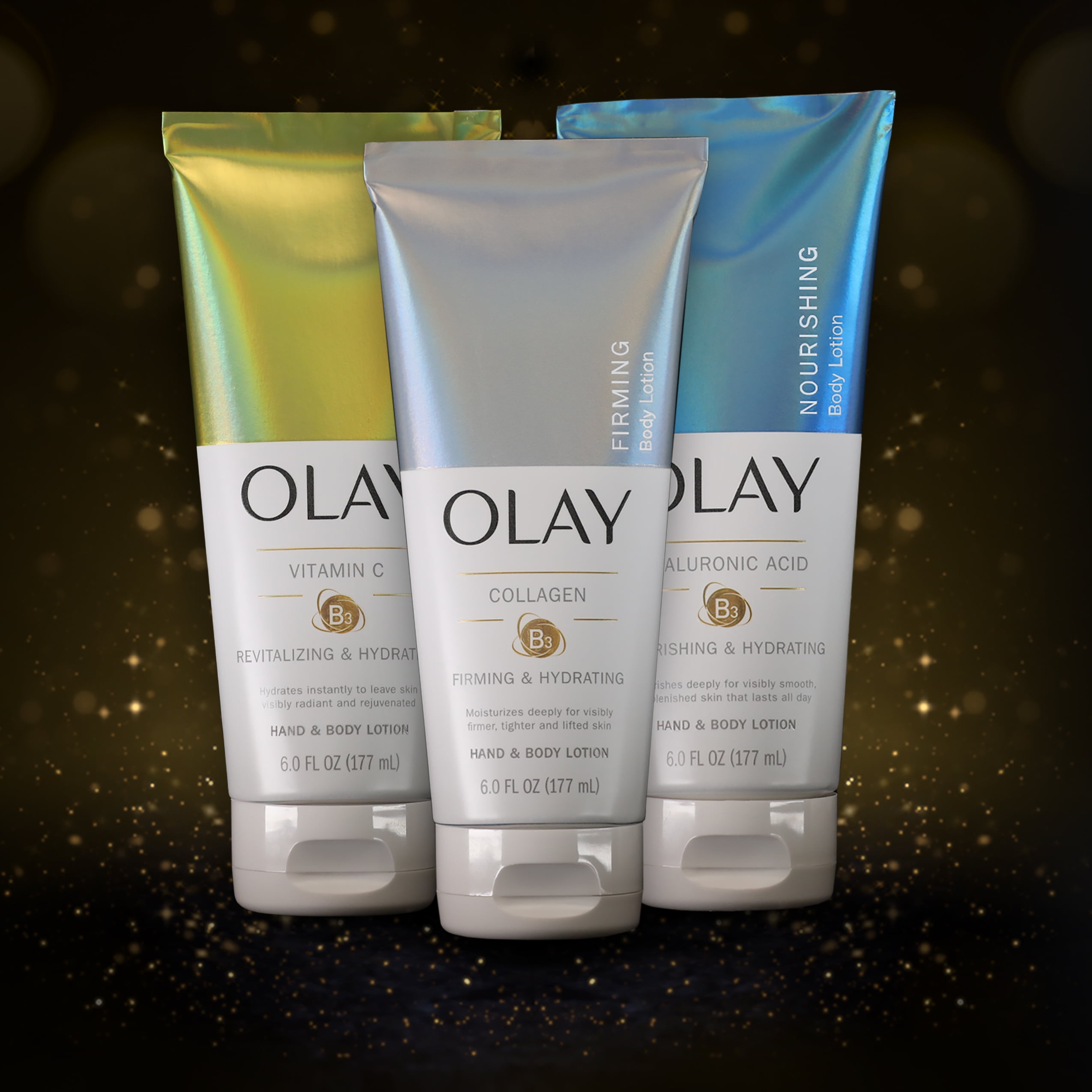 Who wouldn’t want more radiance? Brighten up dull skin with Olay Revitalizing & Hydrating Hand and Body Lotion. This moisturizing lotion has a rich formula crafted with Vitamin C and our Vitamin B3 Complex and was created specifically to give your skin a boost of rejuvenating hydration. Why add Vitamin B3 Complex into your routine? It’s the ultimate skin-moisturization ingredient. Vitamin B3 allows your skin to hold on to water so it can become its own moisturizer. It also leaves you with skin that looks younger, feels softer, and looks smoother. Watch your skin’s visible transformation without worrying about the greasy residue other types of body cream or hand cream can leave behind. This hand and body cream also absorbs quickly, penetrating deeply into the skin’s surface, leaving your skin with long-lasting smoothness and increased skin cell turnover. Keep one in your bag when you’re on the go, one at your desk for moisture when you need it, and one by the sink for post-handwashing hydration. Use daily all over your hands and body during your morning or evening routine. Use with Olay Skin Care-Inspired Body Wash to boost effects of Vitamin B3 Complex and moisturizing ingredients.