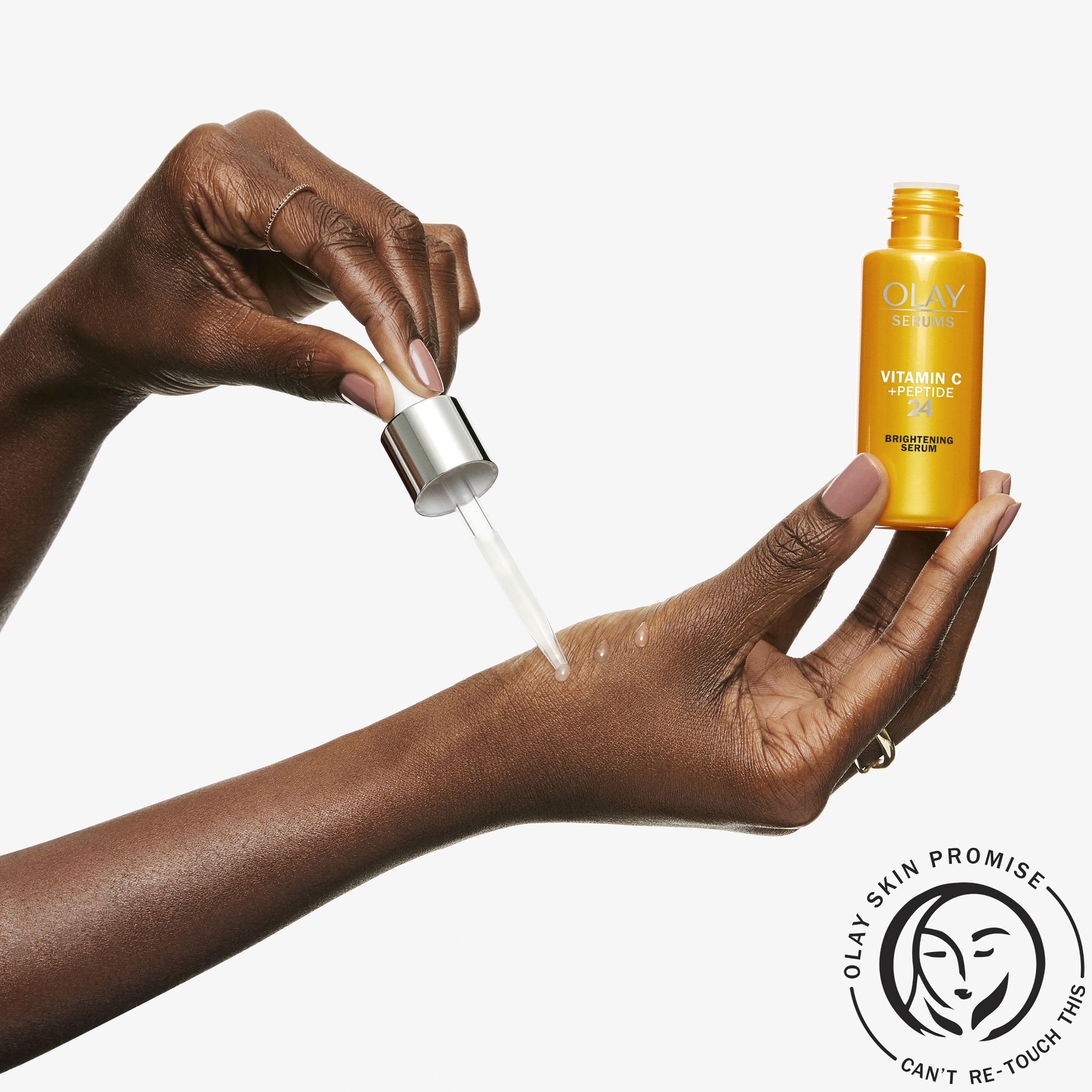 Dull skin? Brighten up, babe! Our Olay Vitamin C + Peptide 24 Serum will visibly brighten and hydrate your skin. This serum, for dry or oily skin, is formulated with powerful ingredients like Vitamin C, Vitamin B and Lactic Acid. What’s not to love about radiant and glowing skin? Citrus-scented, soft, and ultra-lightweight, this formula can be worn under makeup and other skincare products like moisturizers or SPF. It seamlessly blends into skin with a matte finish, this means no sticky or greasy residue, just fast absorption of our formula with great ingredients. Use morning and night to bring out your skin’s radiance, and don’t forget to follow with a good SPF in the daytime to protect your newfound glow. After 1 day of use, you will have skin that looks visibly hydrated, in 1 month, your skin will appear more even and have a healthy, brightened glow. This serum is dermatologist-tested and made without parabens, phthalates, synthetic dyes or mineral oil. It’s only the best for you, you brilliant thing. Our OLAY Skin Promise to you is zero skin retouching in all advertising. OLAY is the first mass skin care brand in the US to take this stance, because we know real beauty is honestly beautiful. We also guarantee you’ll love your OLAY product. If you are not satisfied, we’ll give you your money back via a prepaid card. Must submit within 60 days of purchase. Call toll-free 1-855-845-9797 or visit olay.com/guarantee.