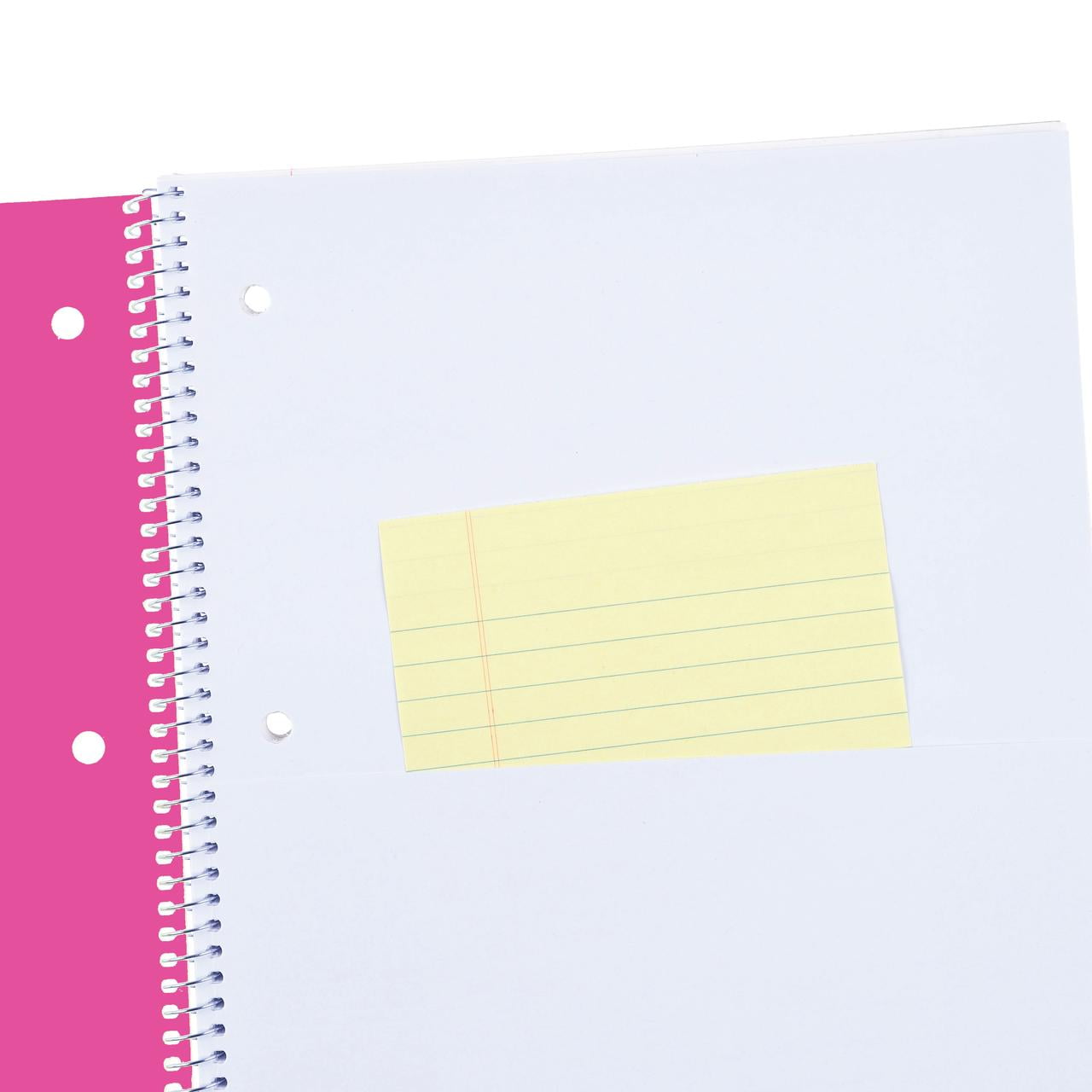 The Pen+Gear poly 1-subject notebook in pink color is a must-have item at school, at work, or at home. This notebook features 100 wide-ruled sheets and inside pockets for storage and organization. The durable poly front cover and thick gray board backer protect the inner contents of the notebook from outside elements. Plus, the perforated, hole-punched sheets work well with three-ringed binders.