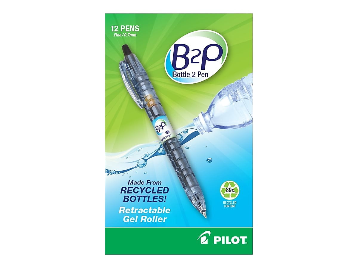 - Retractable gel pens for everyday writing tasks. One dozen pens per pack. Made from 89% post-consumer recycled plastic bottles.