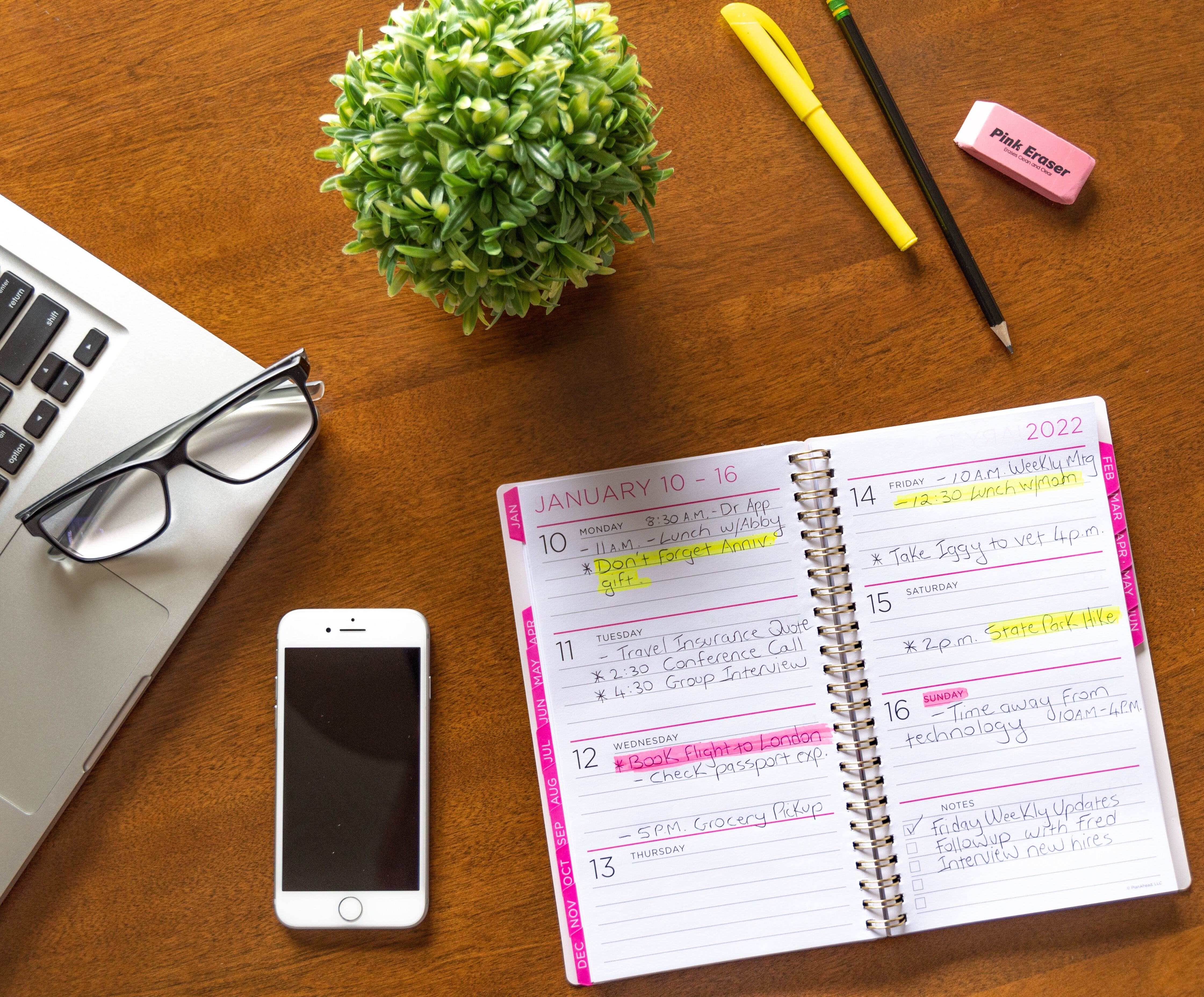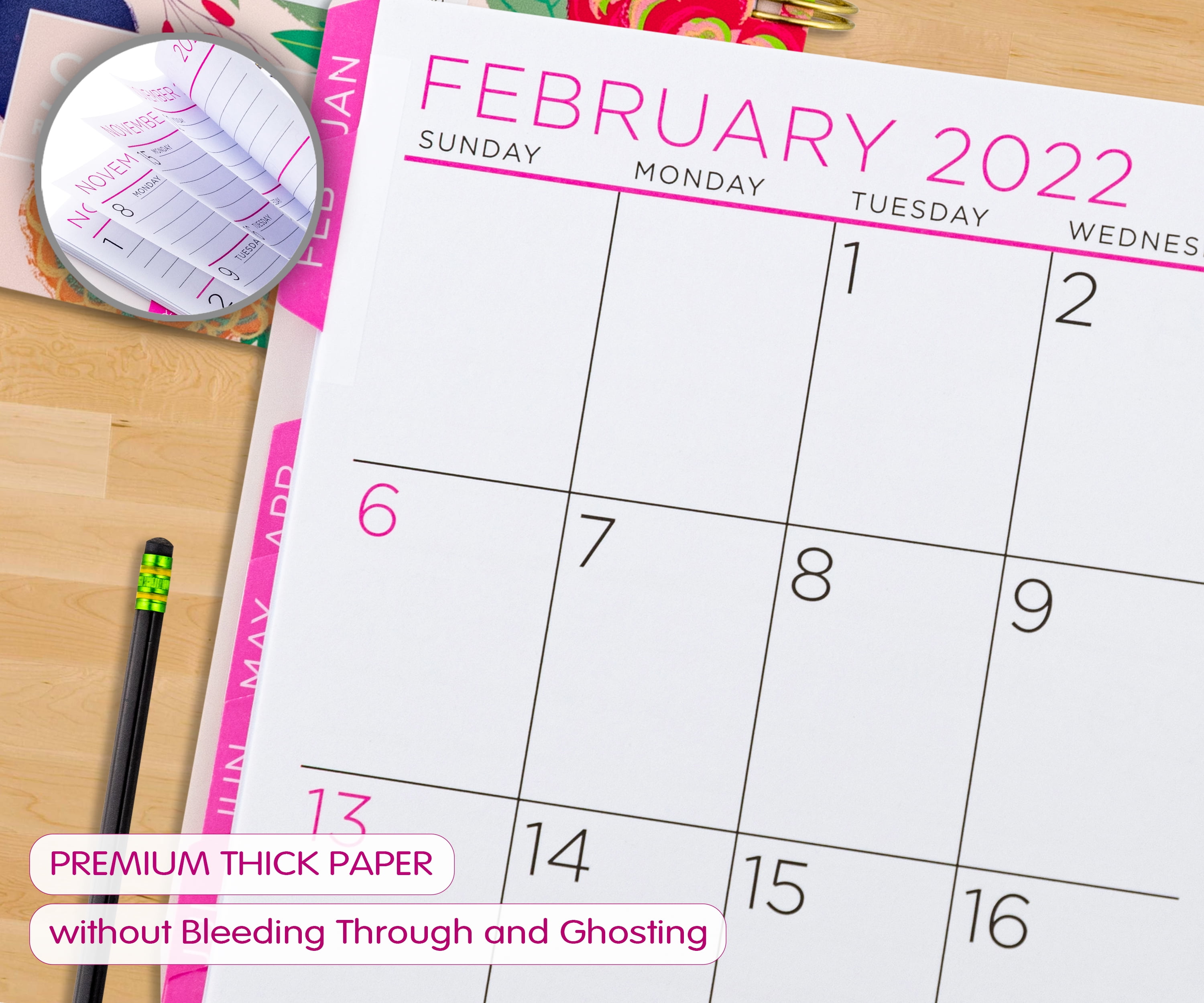 Put your reading glasses away! The See it Bigger collection’s, 15-month, monthly and weekly dated planner with large, easy-to-read type also has plenty of room to jot down all of your events, notes, tasks, and other relevant information. Individual monthly tabs allow for quick access to separate monthly calendars that open flat in side-by-side pages for simple retrieval and entering of information. A defined space along the right margin provides additional room for notes and tasks. Each monthly tab also includes dated weekly pages that open, so each week may be viewed in its entirety with plenty of space to enter specific information for each day. Yearly Reference Calendars and Holiday Listings make future planning simple, while dedicated Note, Contact, and Password Record Pages put all information at your fingertips. Dating is from April 2021-June 2022.