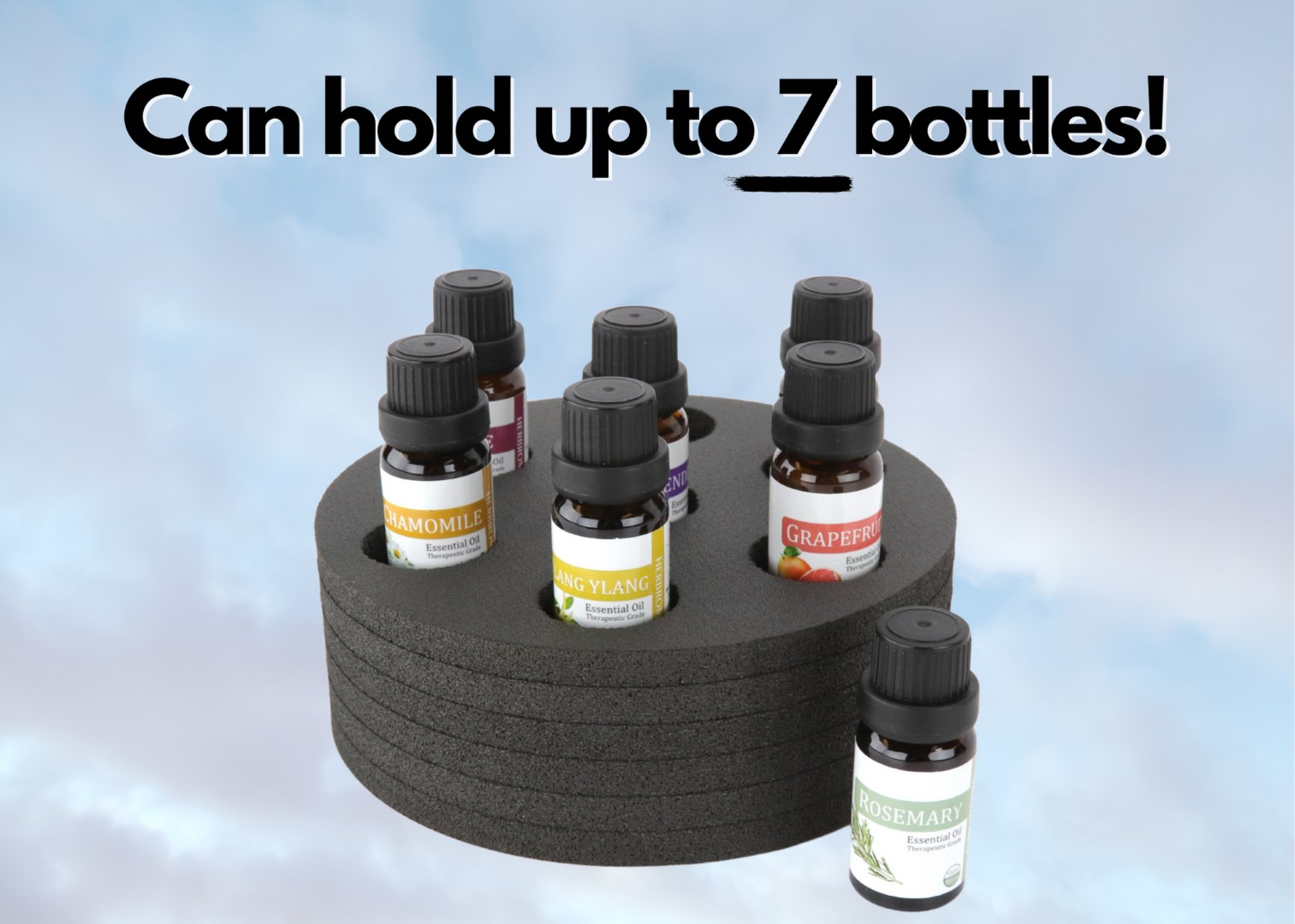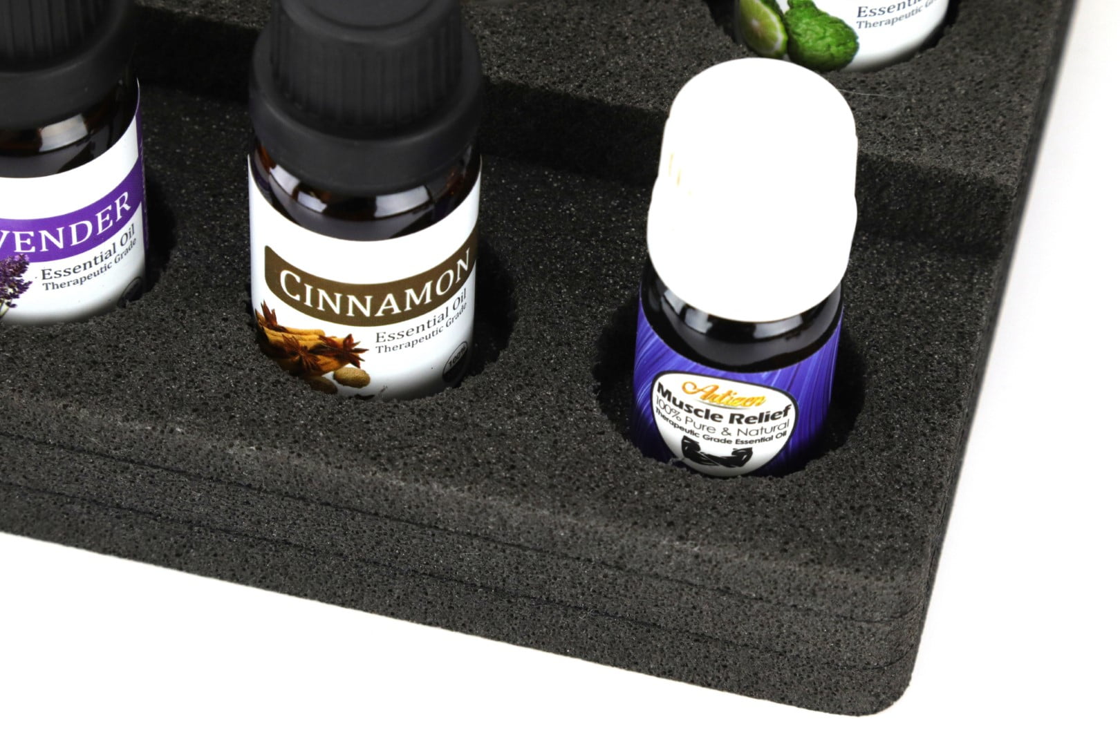 - Organize and display your beautiful essential oil collection in a unique and stylish way with the premium Polar Whale Essential Oil Organizer. Includes 1 black high density foam organizer that holds up to 7 essential oil bottles (1.2" wide pockets comfortably fit 5ml to 15ml bottles).