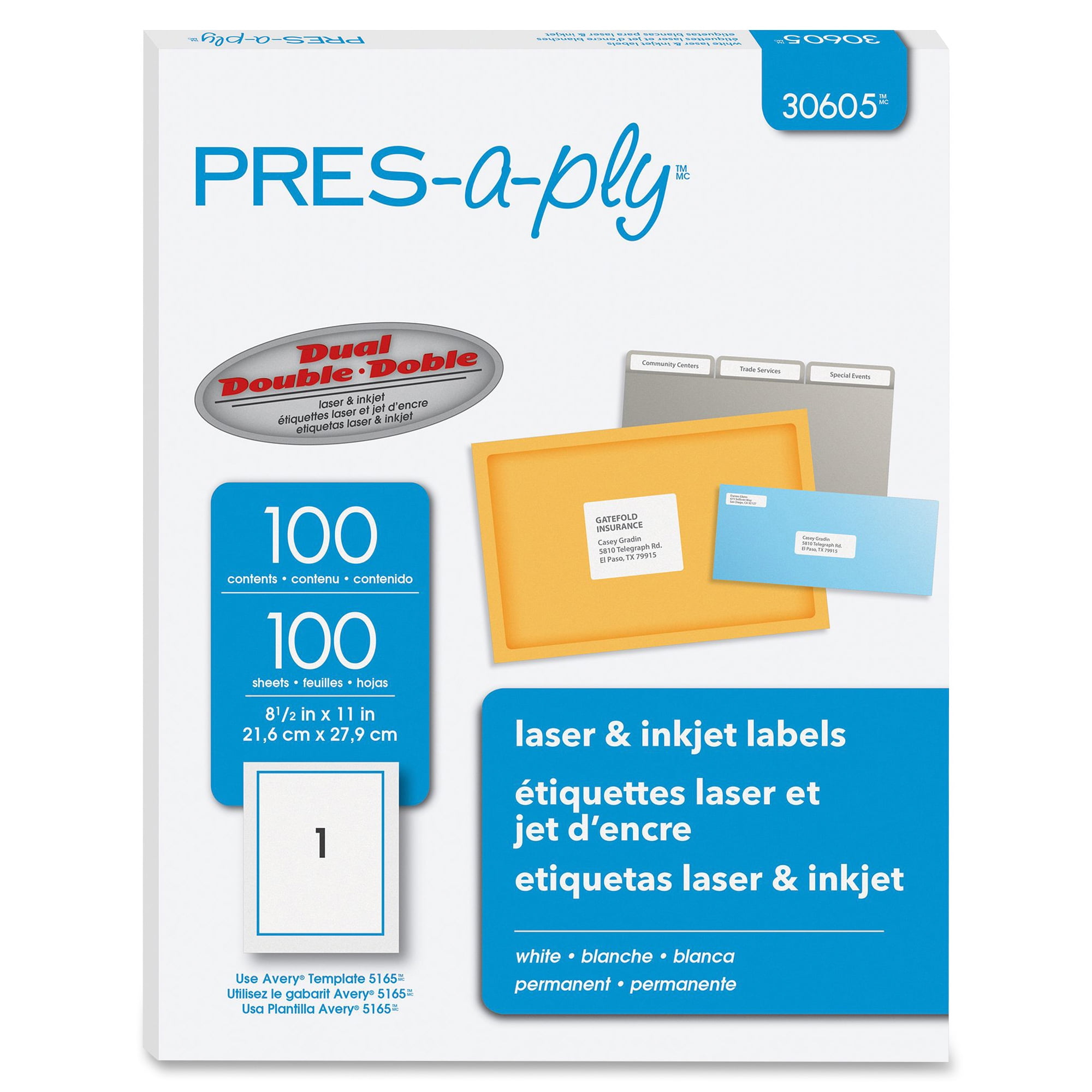 PRES-a-ply labels are economical, can be used for almost every addressing or identification need and are great for high volume, low-cost printing. Permanent adhesive. 8-1/2" x 11" sheets for laser and inkjet printers.