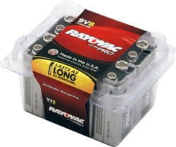 ayovac Alkaline 9V Size Batteries 8 Pack + 30% 0ff Features and Benefits Rayovac Ultra Pro is the #1 selling industrial battery based on top industrial distributors Specially engineered for professional use Reclosable container helps organize and protect batteries from damage and short circuiting Stackable packaging is easy to merchandise Proudly made in the United States! Guaranteed fresh for 5 years Best used before date on battery Mercury Free formula Rayovac Lasts as Long as Energizer Max Product Eligible for FREE SHIPPING! Free Shipping Offer Applicable for items shipped to US Addresses ONLYRayovac Alkaline 9V Size Reclosable 8 Pack + 30% Off