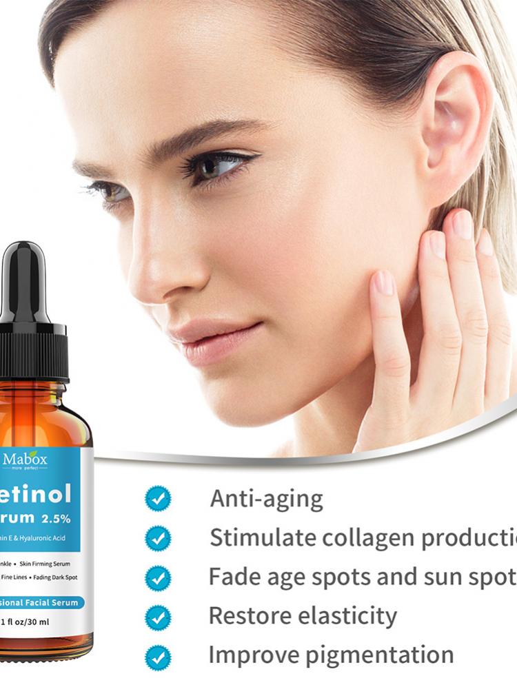 - This Retinol Serum provides both immediate and long term release to promote radiant skin.Smoothen the fine lines,delay the aging of the skin cells and shrink the pores,and acne