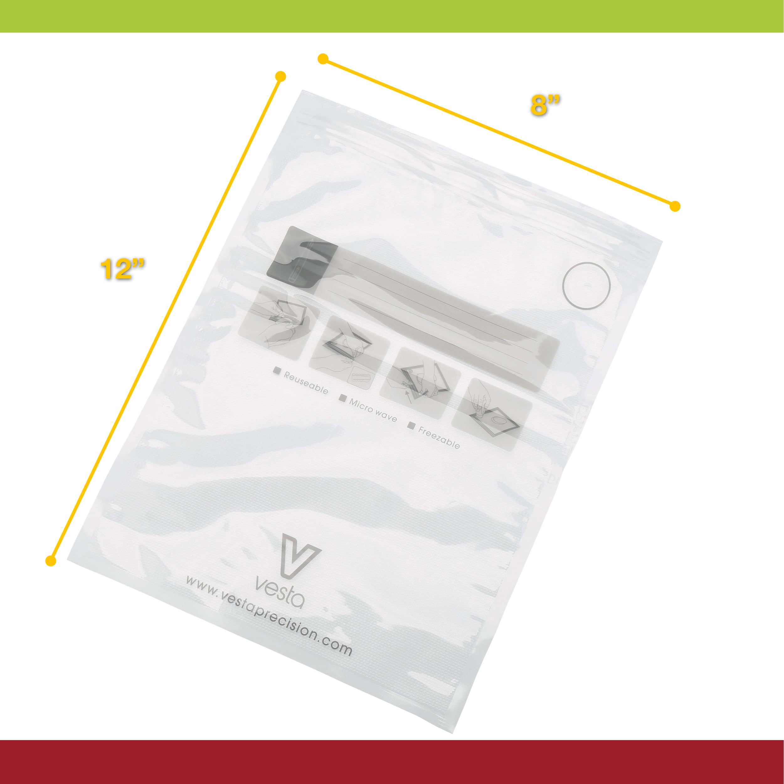 Reusable Handheld Sealer Bags from Vesta Precision | with Zipper and Valve | 8×12 inches | 15 Count