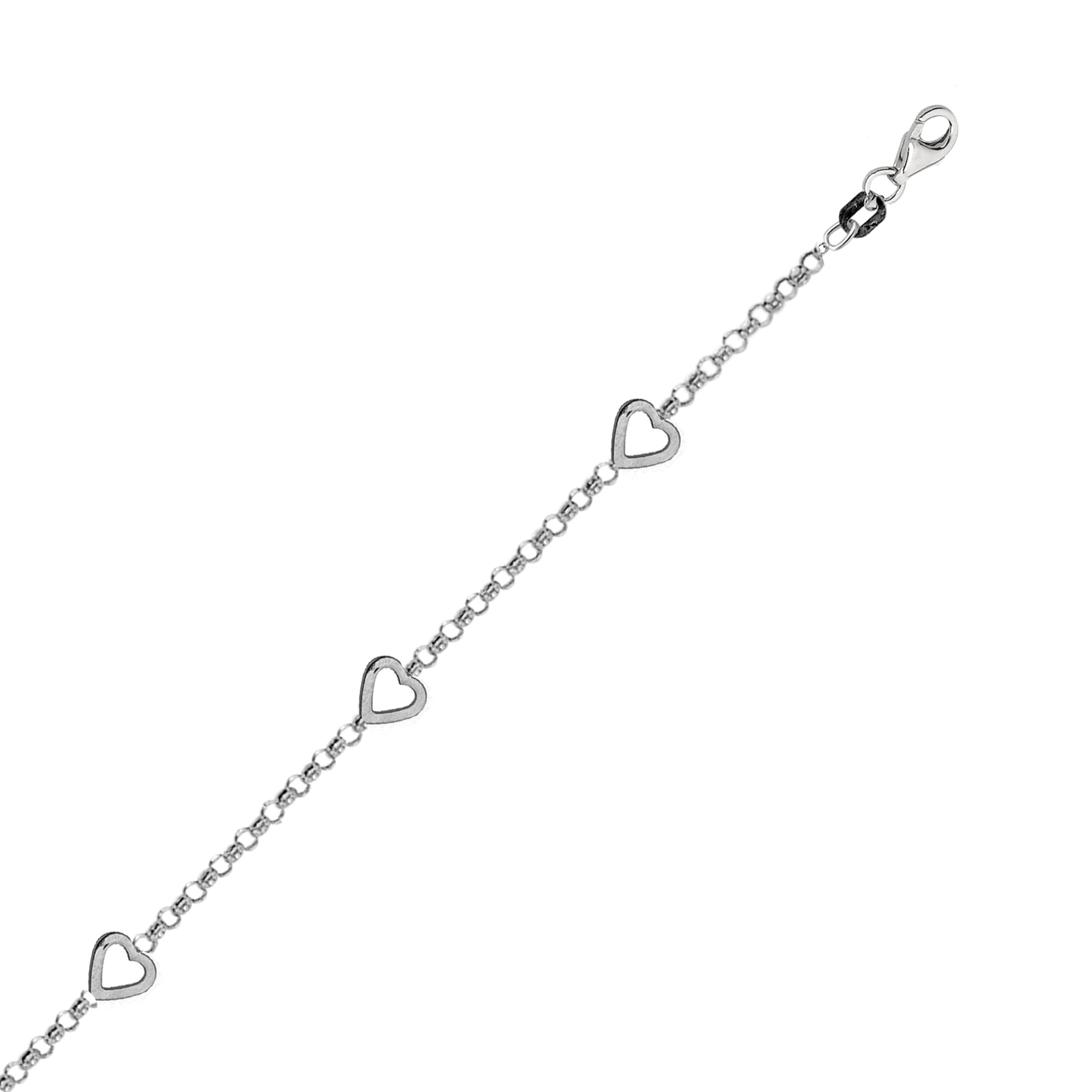 Genuine, made in Italy, 925 Sterling Silver classic shiny mini sideways open heart cable rolo link ankle bracelet foot chain anklet.