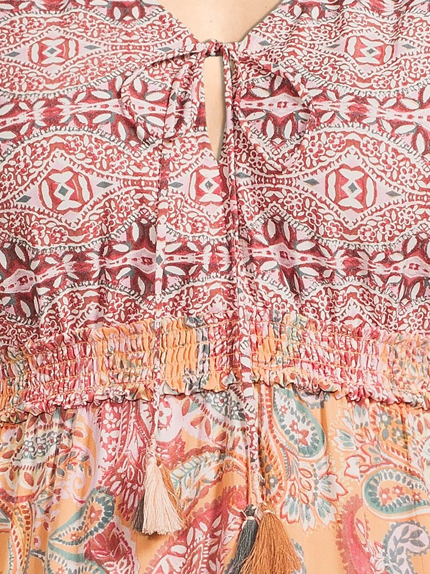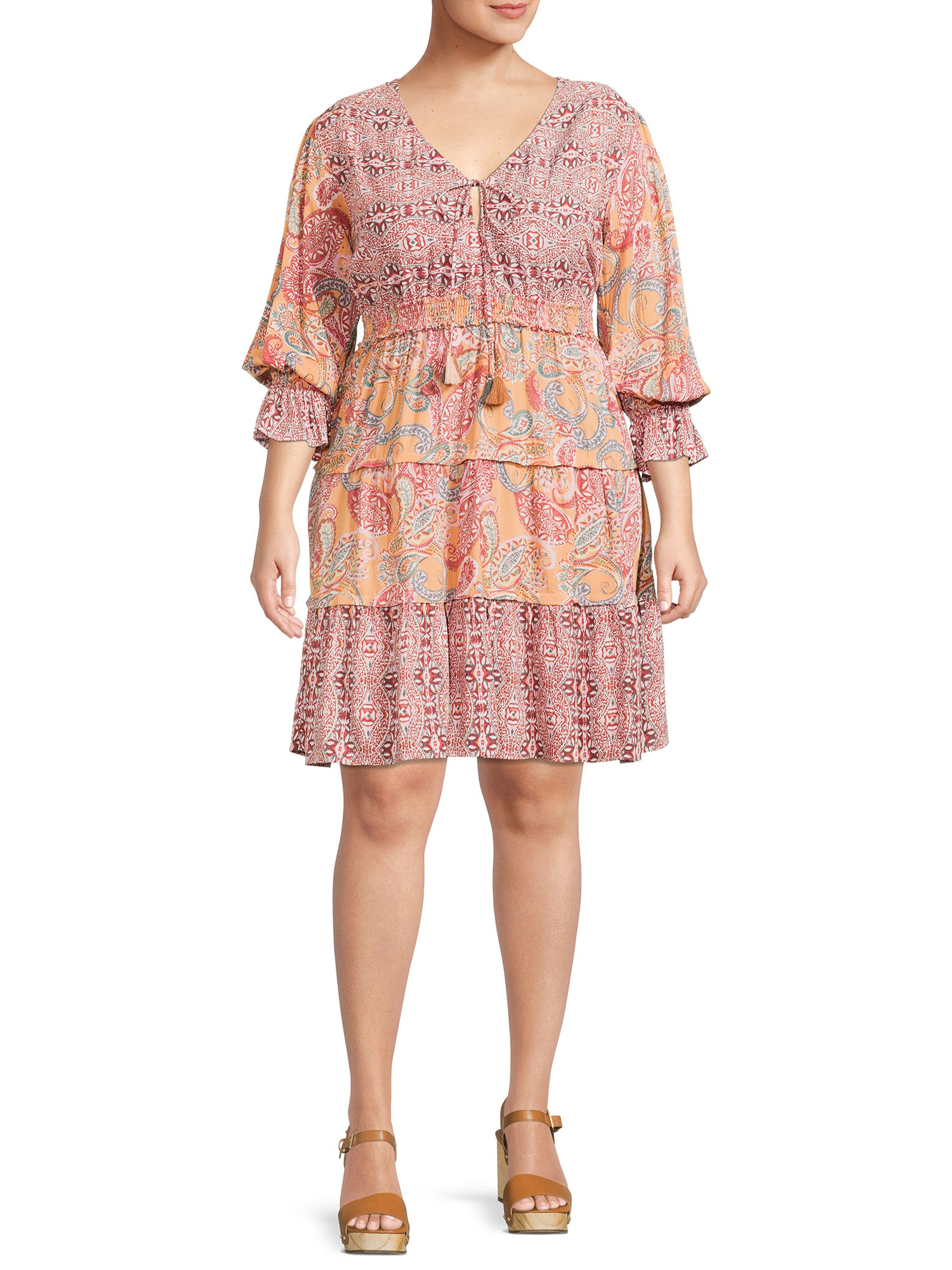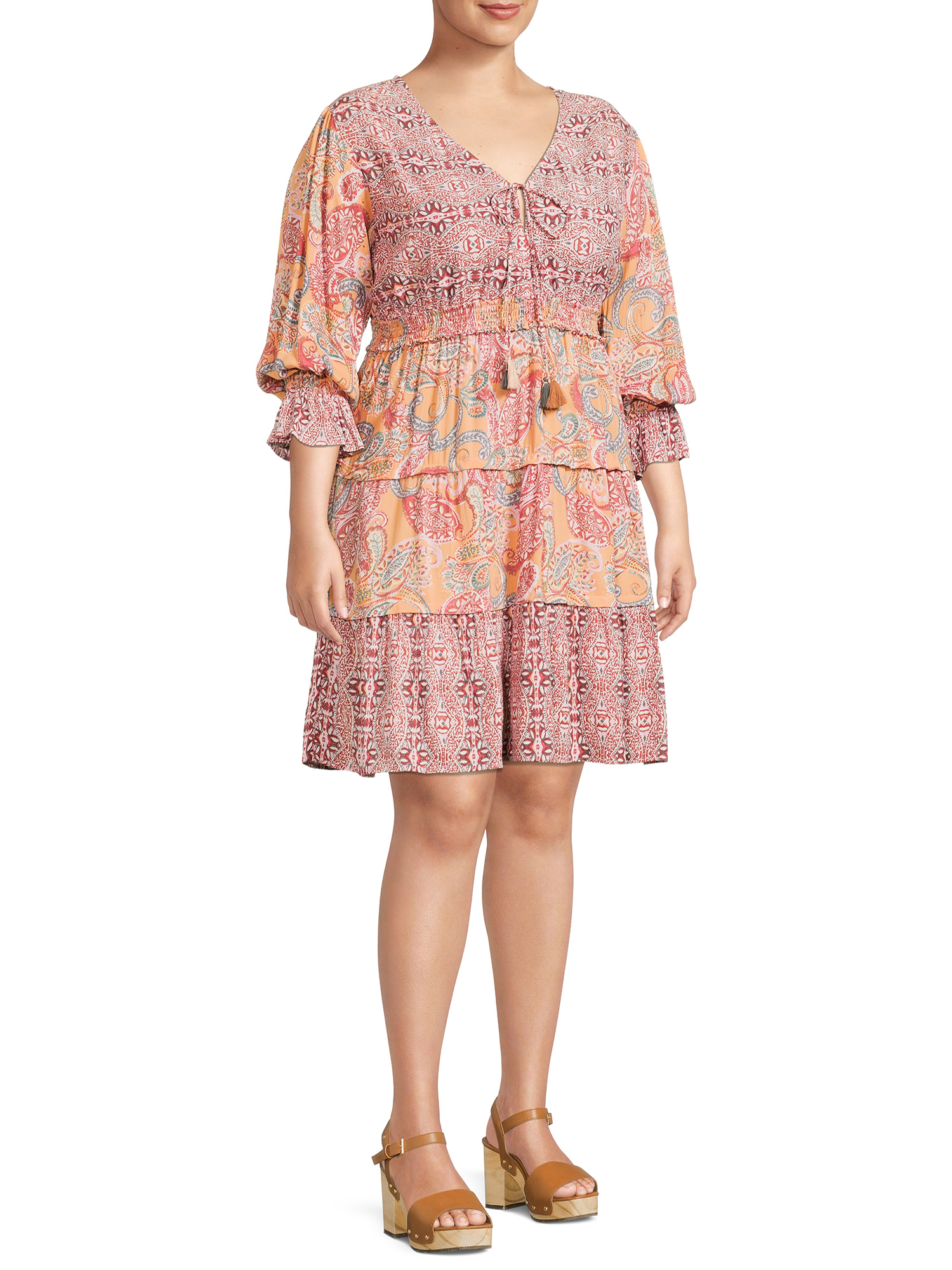 Romantic Gypsy Women’s Plus Size Tassel-Front Elastic Waist Long Sleeve Dress