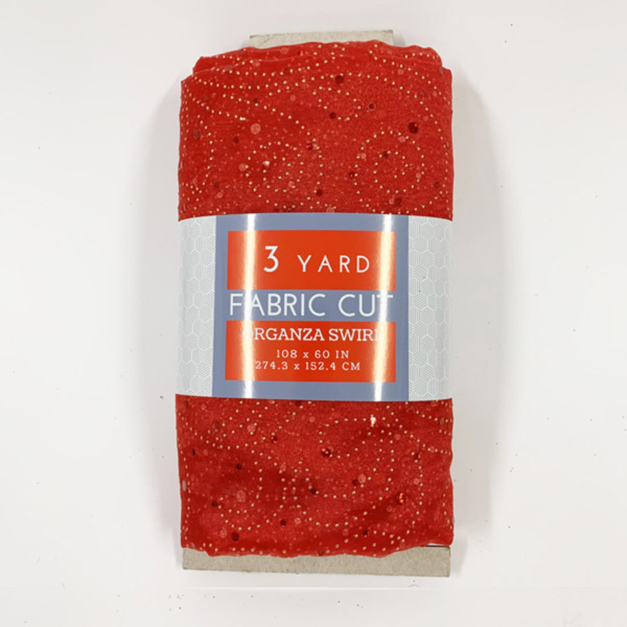 Shason Textile 55" Nylon Organza Swirl Fabric 3 Yards Precut in Red
