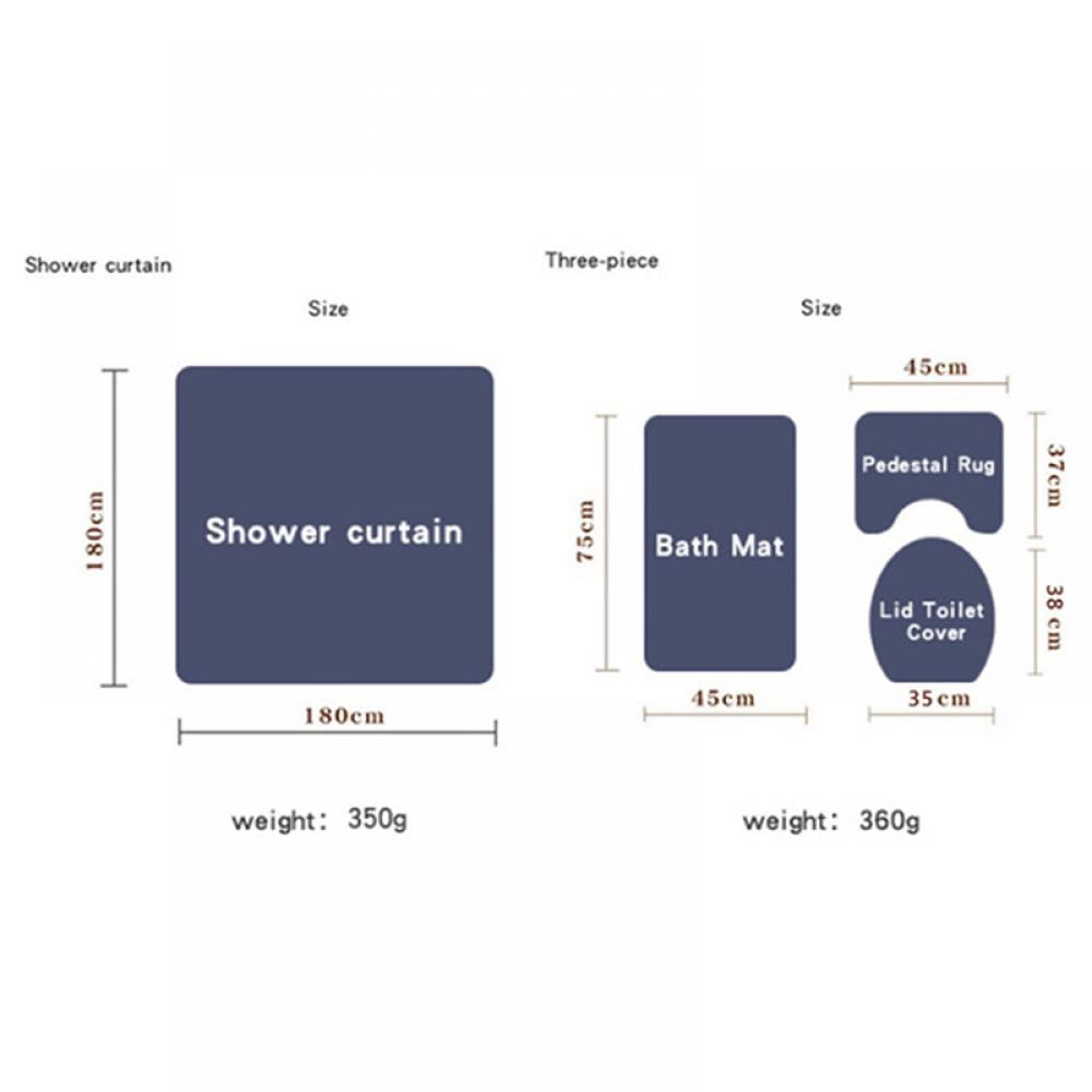 - 1. 100% polyester fabric, shower curtain suit is made of environmental friendly polyester, with good waterproof effect. Non slip bath mat / u-carpet made of flannelette is durable, non-toxic and safe, which is the best choice for your family
