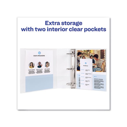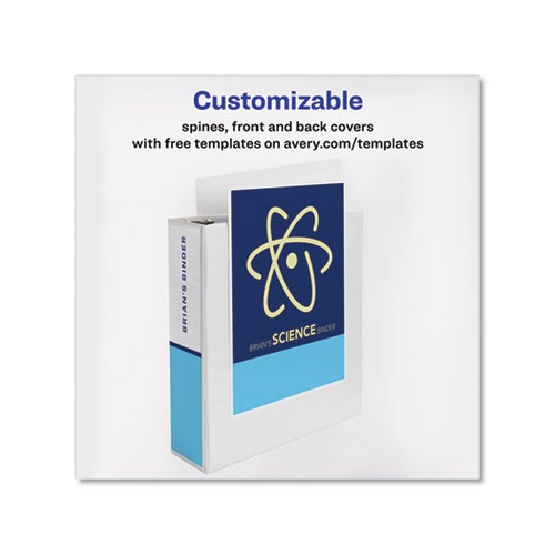 Discover sturdy simplicity in a convenient, lightweight package. Showcase View Binder offers an economical solution to your organization needs. Textured clear cover hides surface damage resulting from normal use. Put your personal stamp on the binder by designing a customized cover and spine with free, easy-to-use templates from Avery Design & Print. Round rings are mounted on the back cover for a clean spine and pages lie flat. Tuck handouts, pamphlets and other loose or unpunched paperwork into the two interior pockets for easy access. Perfect for light-use, this slim binder is the friend your papers never knew they were missing. Binder Type: Ring Binder Style: View Binder Size Capacity: 3" Binder Sheet Capacity: 460. Green : Contains a minimum of 32% post-consumer recycled content, 40% total recycled content.