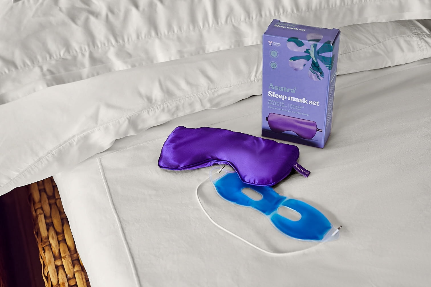 Create a zen moment anytime, anywhere. Made from 100% silk and fully adjustable, this hypoallergenic, luxurious, lavender aromatherapy eye mask or eye pillow can be used as a weighted sleep mask, for meditation or shavasana during yoga, or to relieve migraines and headaches. The weighted lavender eye mask or eye pillow also blocks light. Need extra pampering? Use the therapeutic gel eye mask to soothe puffy or tired eyes. You can customize this Asutra eye mask as you like. silk