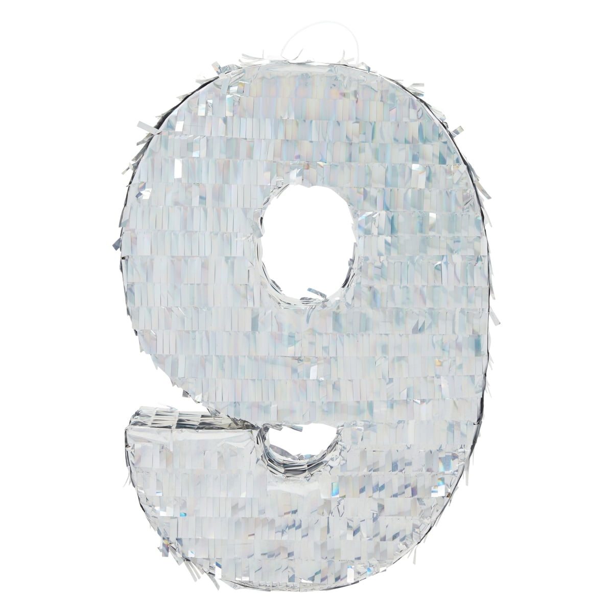 Small Number 9 Pinata, Silver Holographic Foil Party Decorations for Kids 9th Birthday Centerpiece, 15.7 x 9 x 3 in