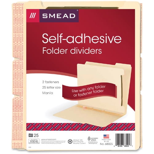 Smead Self-Adhesive Folder Dividers with Twin-Prong Fastener For Letter 8 1/2′ x 11′ Sheet – Manila – Manila – 25 / Pack