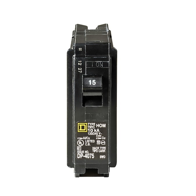 The Square D by Schneider Electric Homeline 15 Amp One-Pole Circuit Breaker is used for overload and short-circuit protection of your electrical system Designed exclusively for the residential market, Homeline products offer everything you need to distribute electricity throughout your home Plug-on design, easy to install Switching duty rating (SWD) for 15 Amp one-pole breakers Compatible with Homeline load centers and CSED devices 120/240 Vac Contains 10,000 AIR ANSI certified and UL listed Limited lifetime warrantySquare D Homeline 15-Amp 1-Pole Standard Trip Circuit Breaker