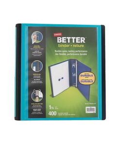 - 1 1/2 inch binder. Durable covers are made of plastic.